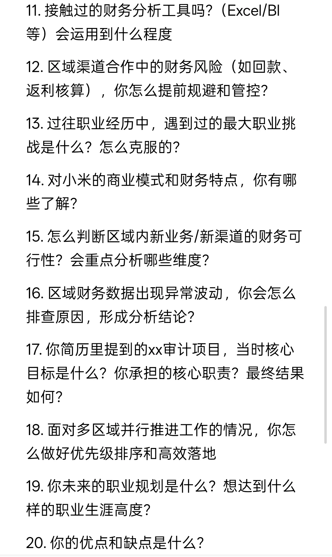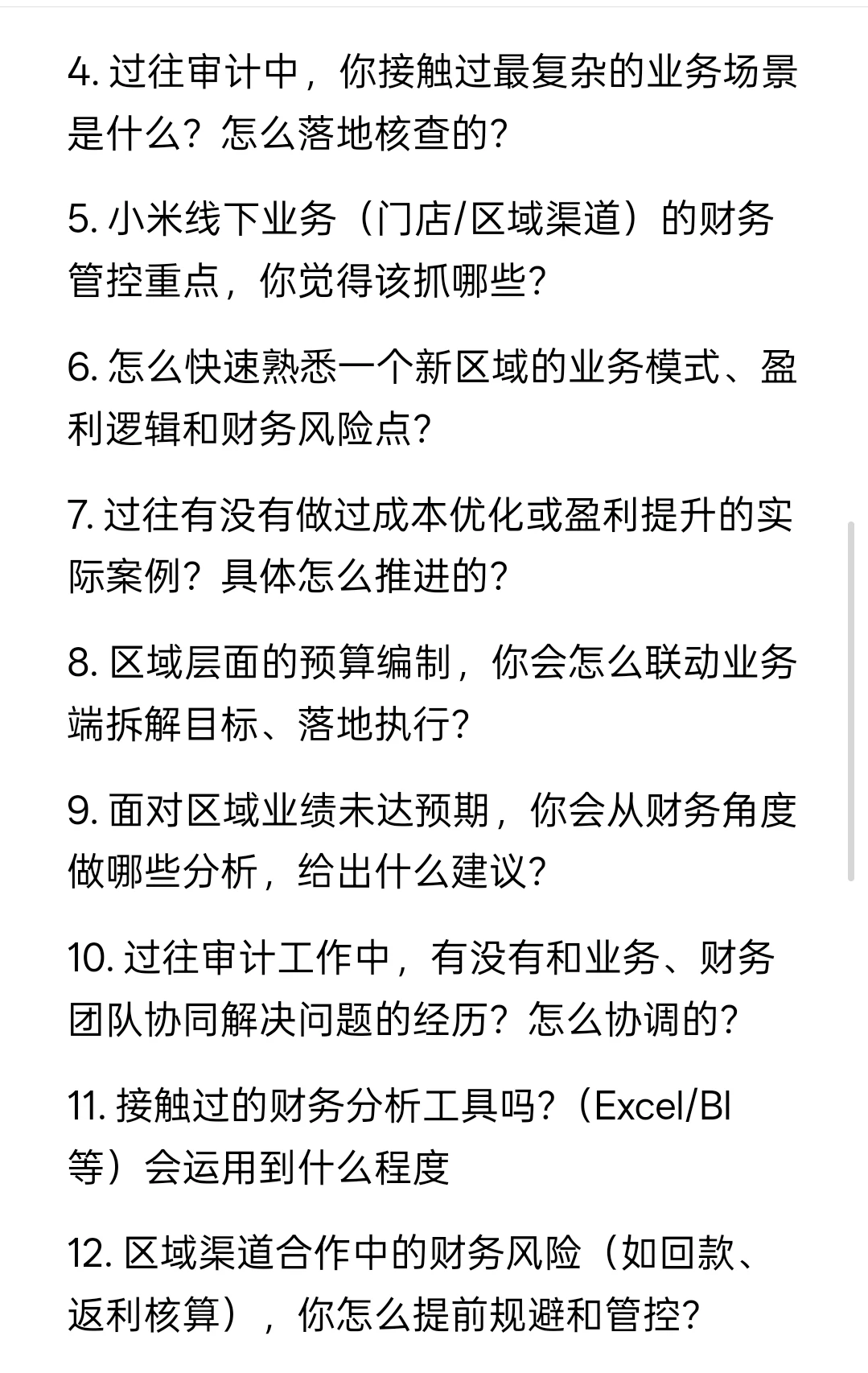 5. 小米线下业务(门店/区域渠道)的财务管控重点,你觉得该抓哪些?