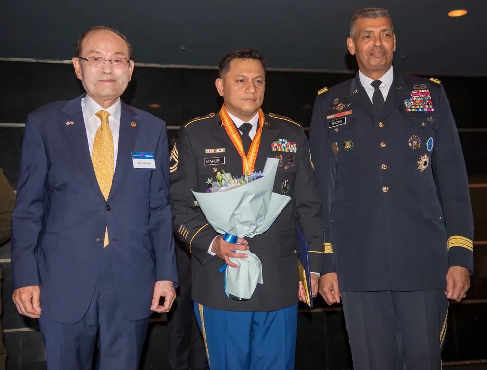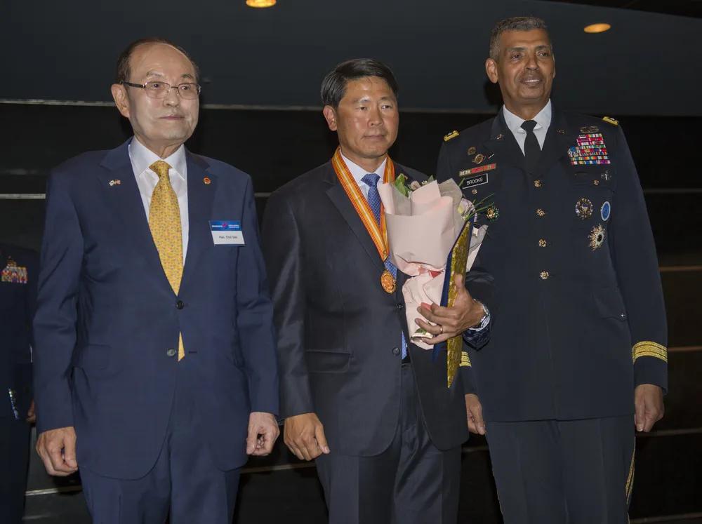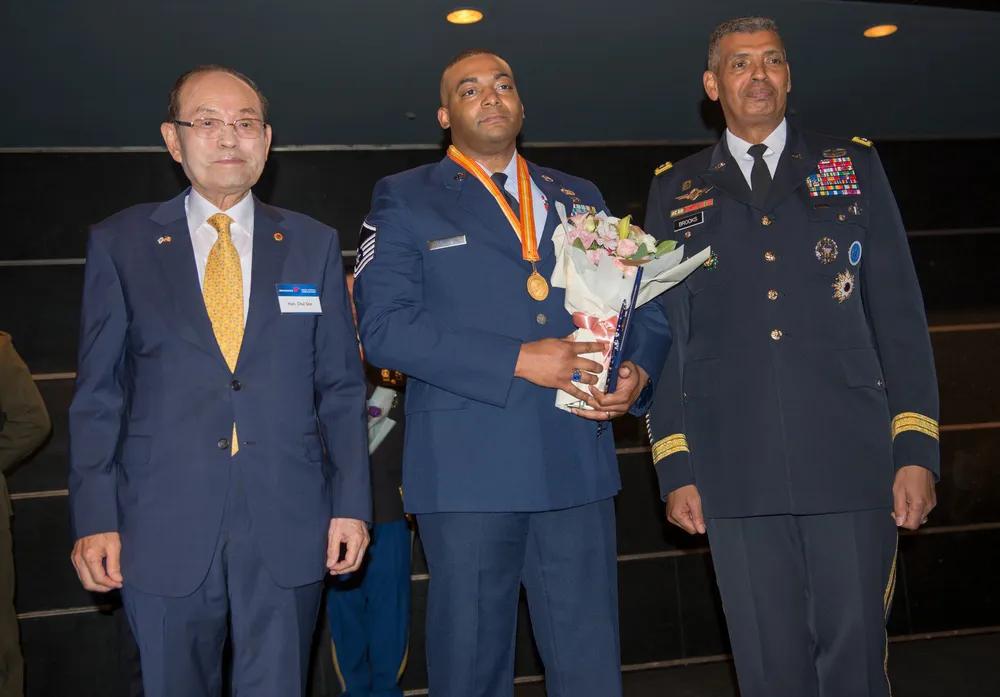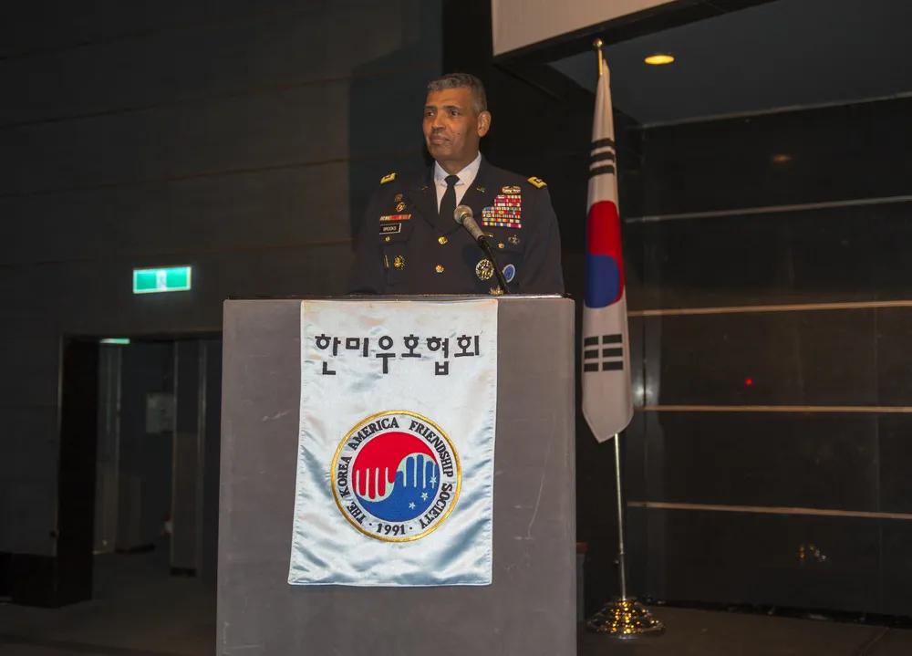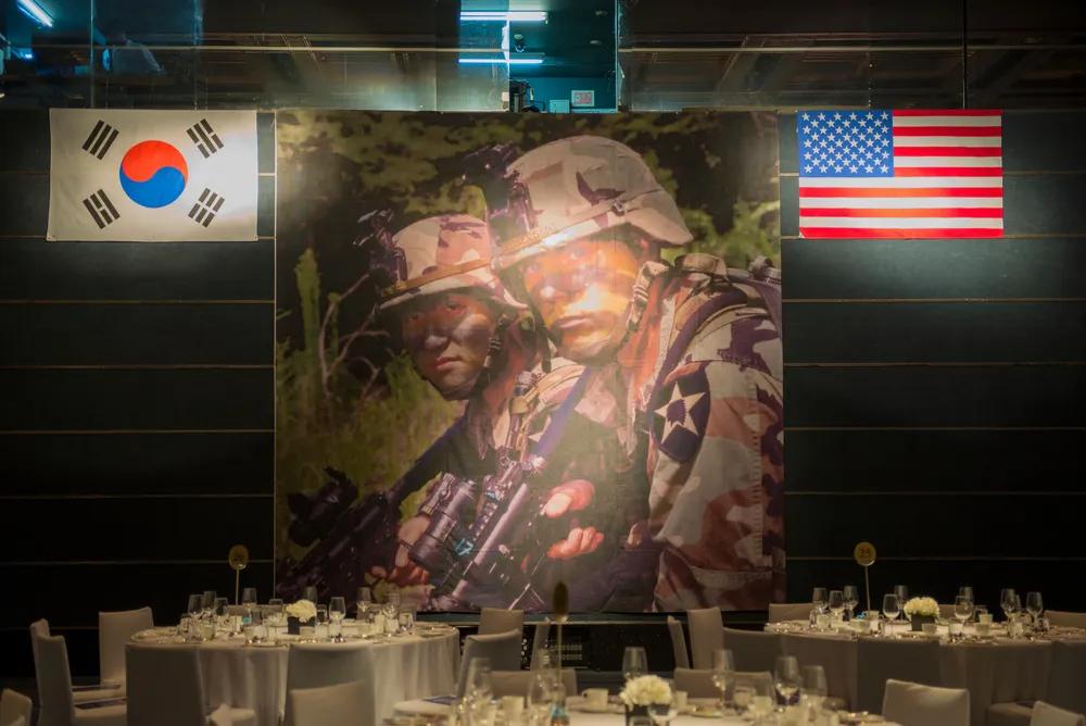 亲美在韩国社会是根深蒂固的。 驻韩美军官兵和亲美的韩国公民齐聚一堂,参加韩美友谊协会的颁奖活动,促进两国的友谊。