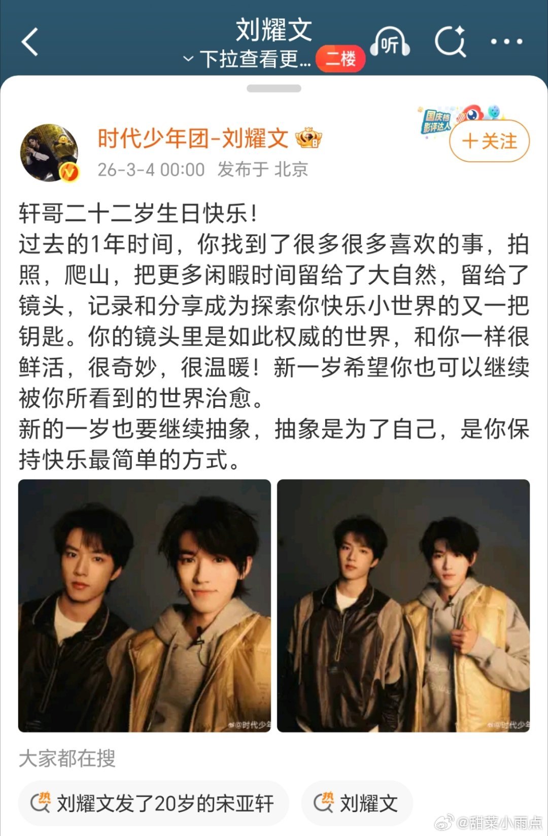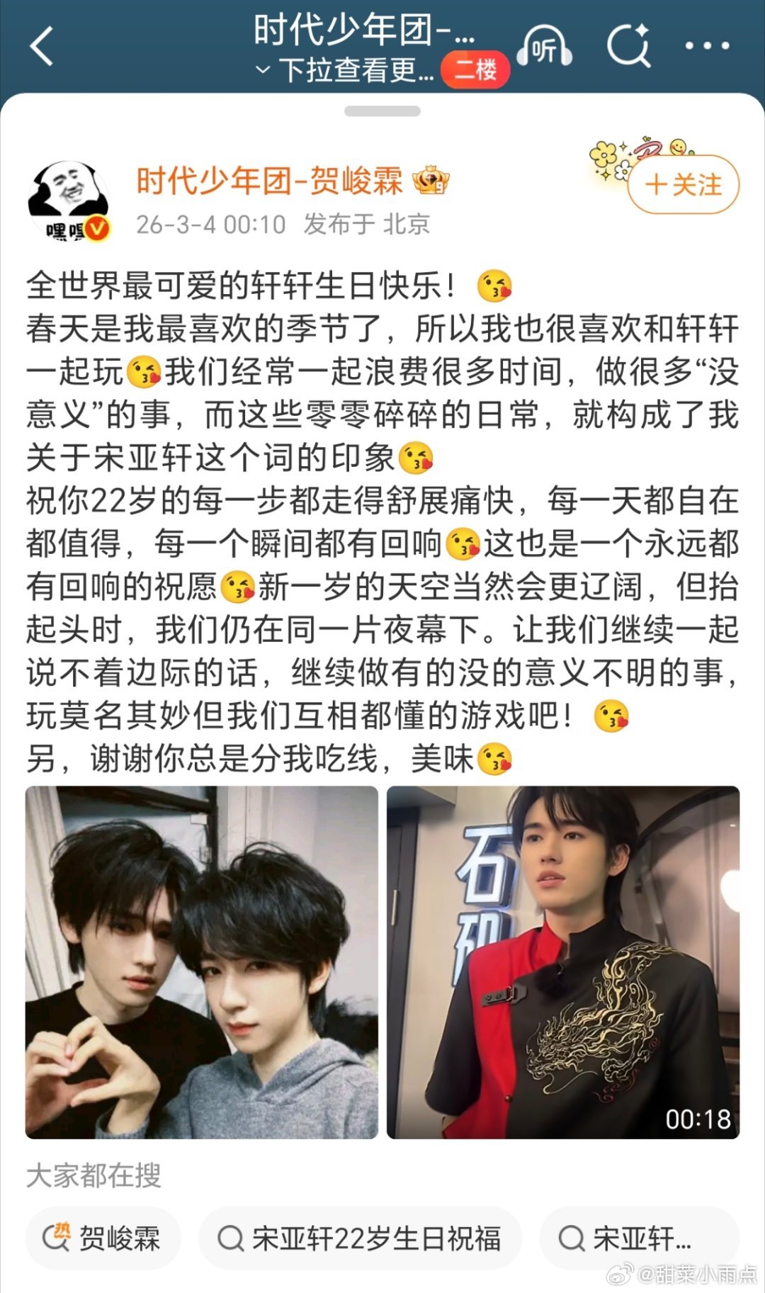 刘耀文 贺峻霖 张真源三个人都卡零点给宋亚轩送生日祝福!我们 357 和 文轩
