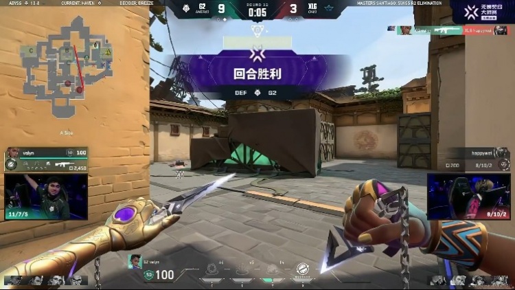 第九局:XLG开局控图后选择打C点,但是G2回防成功抓到XLG进攻断,XLG进不去点被G2拿下一分!