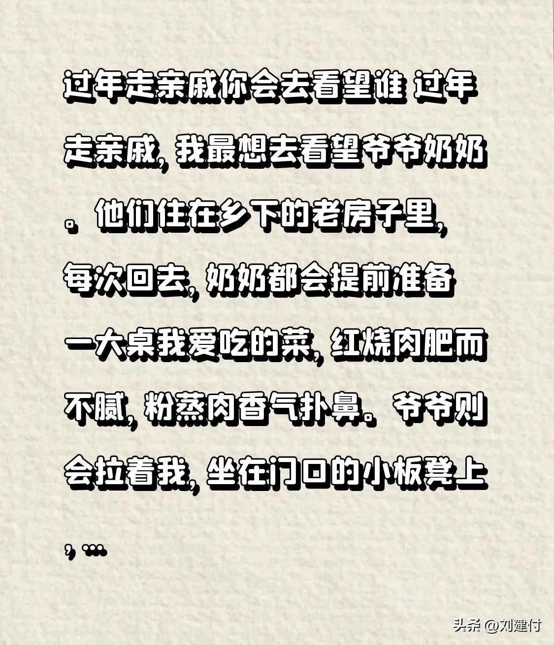过年走亲戚你会去看望谁 过年走亲戚,你会去看望谁?我最想去看望爷爷奶奶。他们住在乡下老房子里,每次回去,奶奶总会提前备好一大桌我爱吃的菜,红烧肉肥而不腻,粉蒸肉香气四溢。爷爷会拉着我坐在门口小板凳上,讲他年轻时的故事。 舅舅一家也不能忘。舅舅酷爱钓鱼,每次去他家,他都会激动地跟我分享钓鱼趣事,还会把钓到的大鱼送我。舅妈心灵手巧,能做各种精致点心。去他们家,如同回到温暖港湾,热热闹闹,满是亲情味道。 亲戚关系感悟 亲人走亲戚 最好的亲戚关系 亲戚相处的分寸