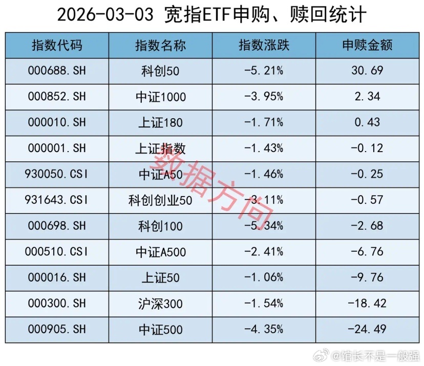 中证1000指数(2.34亿)、上证180指数(0.43亿),分别获小幅净申购。