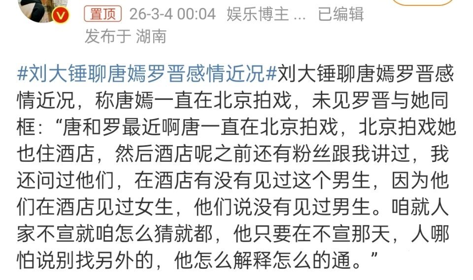 刘大锤聊唐嫣罗晋感情近况他报了个啥?婚姻的状况到底分没分是个谜,不过现在唐嫣比罗