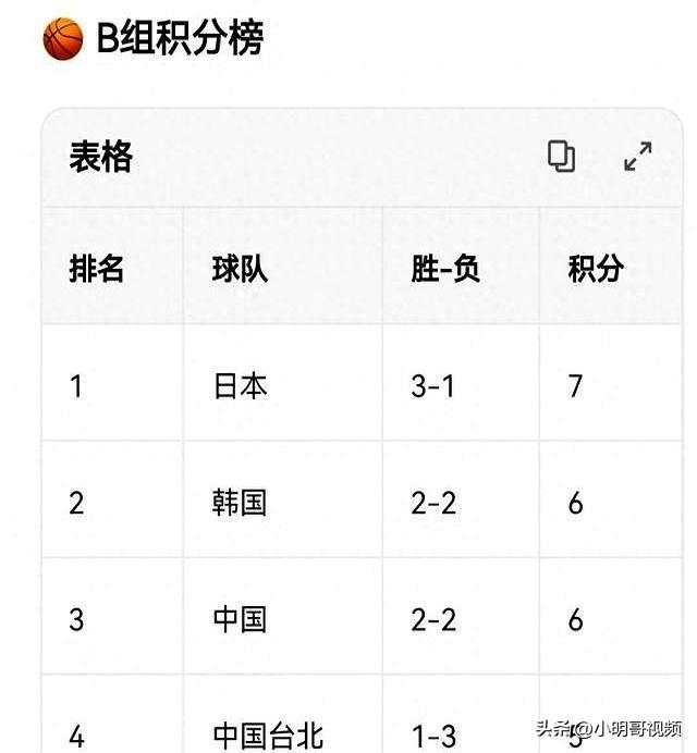 中国队冲击小组第一有戏吗?B组出线形势与晋级条件全解析 B组出线形势:中国主场是关键,赢球即掌握主动 B组目前积分:日本3胜1负7分,韩、中同为2胜2负6分,中国台北1胜3负5分。每队打六场,已赛四轮,最后两场定走势。 FIBA积分规则简单:赢球2分,输球1分。积分相同时,先看相互战绩,再看净胜分。中国剩两场均主场,先打日本,再战中国台北;日本客场连战中国、韩国;韩国则主场迎战中国台北、日本。 中国最稳路径:再两连胜拿4分,积分达10分。只要做到,基本锁定头名或至少并列第一。因中日交锋占优,相互战绩占先,即便同分也能压制日本。韩国若两连胜也仅10分,需比中韩战绩定排名;若仅1胜,则中国稳第一。 三种关键情景: 1. 理想:中国两连胜,韩日均不全胜,中国10分断层第一; 2. 并列:中国、韩国同10分,看中韩交锋结果定头名; 3. 稳妥:负日本但胜中国台北,积9分,仍大概率出线,但排名靠后,第二阶段更难打。 主场优势要转化为胜势。打日本,需用高度与对抗破坏其节奏,防住三分,逼其打攻坚。进攻端应压节奏,多打内线,制造协防后转移底线突破或外线机会。 对中国台北不可轻视,其配合熟、投射稳,易胶着。应压节奏、控失误、抓错位,避免对攻。 真正决定排名的是细节:失误是否个位数,罚球是否稳,篮板是否争到底,防守能否扛住对手三分爆发。轮换要早,强度要续,避免第三节断电。 情绪管理同样关键。主场易上头,教练组需建立稳定结构,明确攻防重点,减少波动。 中国手握好牌:两个主场、完整阵容、合理赛程。此前比赛已积累经验,临场调整能力提升。 赢球本质是无数小决策的累积。不必冒险,只需打好自己。两场主场若全取,中国不仅稳进第二阶段,更有望夺小组头名。把确定性握在手里,比分自会说话。