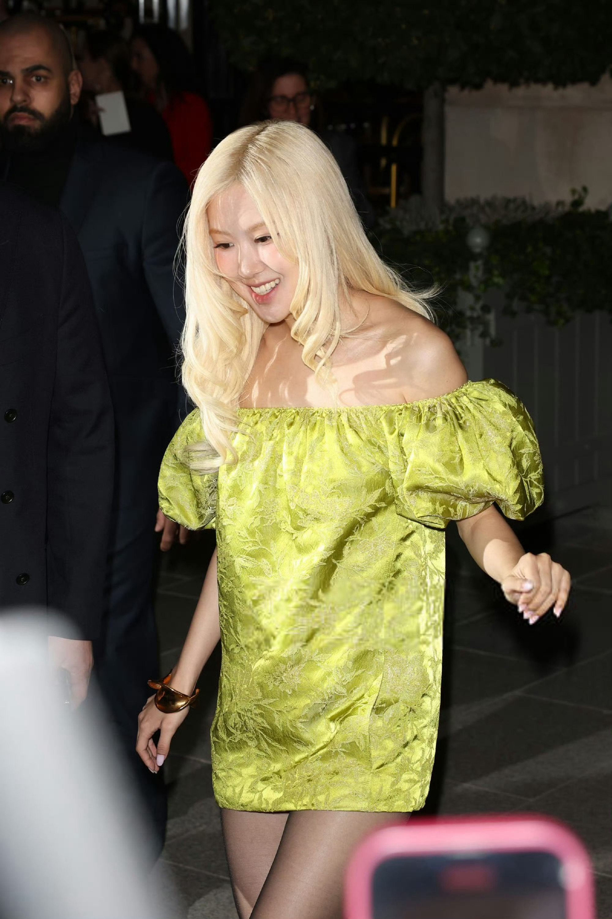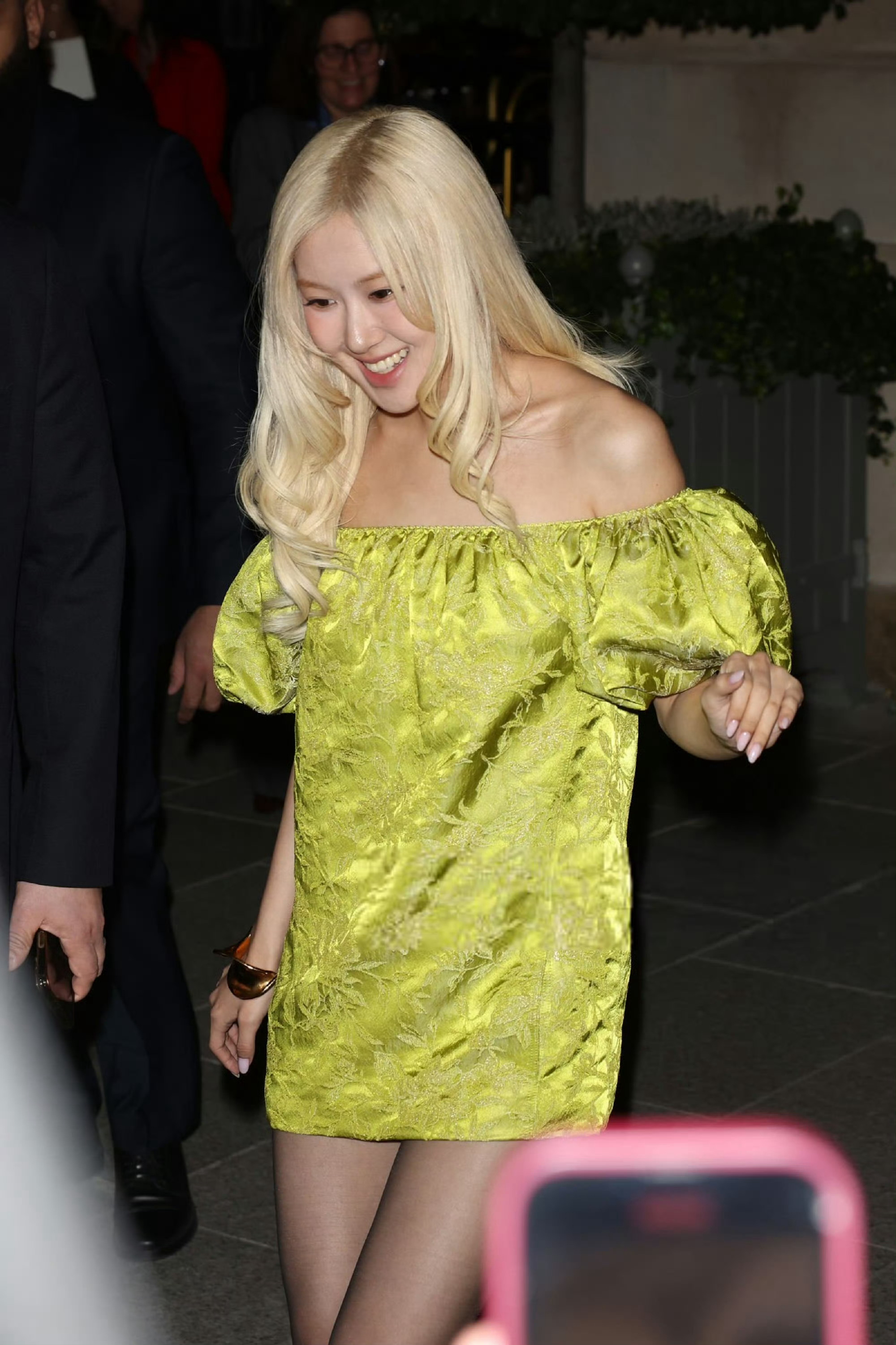 朴彩英 x Saint Laurent Winter Show圣罗兰2026冬季时装秀一条翠绿色的一字领提花礼裙巴黎时装周