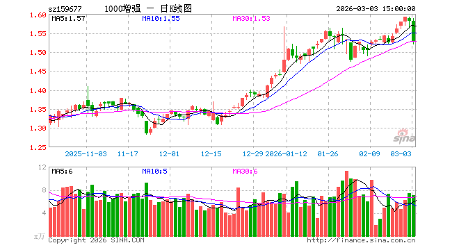 3月3日,中证1000增强ETF银华(159677)跌3.42%,成交额1086.93万元。当日份额减少300.00万份,最新份额为2690.41万份,近20个交易日份额增加0.00份。最新资产净值计算值为4088.08万元。