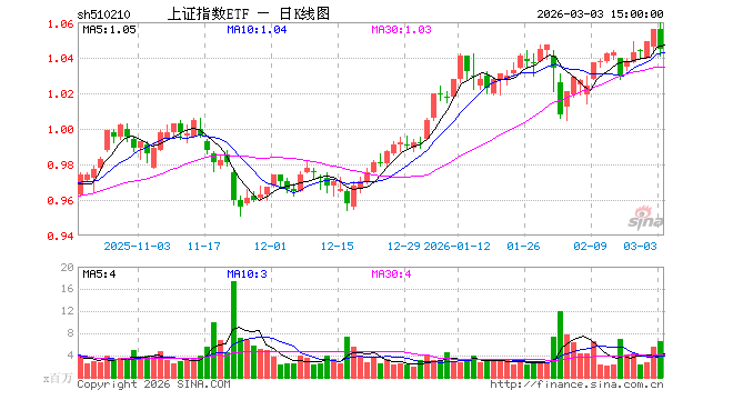 3月3日,上证指数ETF(510210)跌1.04%,成交额6.82亿元。当日份额增加3300.00万份,最新份额为66.23亿份,近20个交易日份额增加10.29亿份。最新资产净值计算值为68.94亿元。