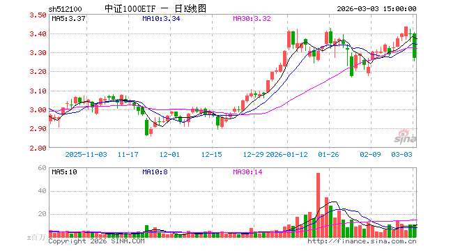 3月3日,中证1000ETF(512100)跌3.68%,成交额35.82亿元。当日份额增加3200.00万份,最新份额为82.59亿份,近20个交易日份额减少52.42亿份。最新资产净值计算值为269.28亿元。