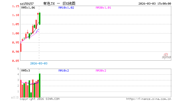3月3日,有色金属ETF天弘(159157)跌5.77%,成交额4.46亿元。当日份额增加3.07亿份,最新份额为28.22亿份。最新资产净值计算值为29.55亿元。