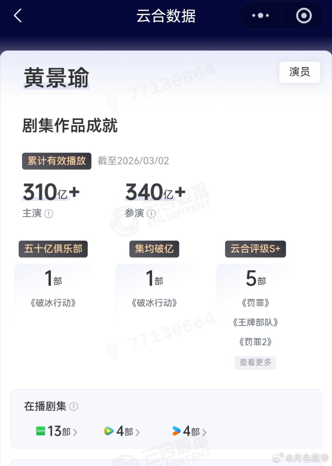云合剧集播放量又增加10亿,来到了310亿,主演票房也到了100亿。真不错真不错