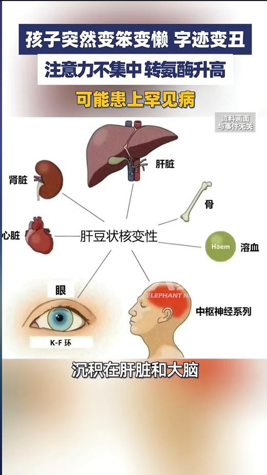 “家长们千万注意!”近日,福建,一男生成绩突然下滑,注意力变得不集中,书写也越来越潦草。家长带孩子到医院检查后,发现转氨酶升高,竟然是患上了一种罕见病,名为肝豆状核变性,俗称“铜娃娃病”。网友:这病我听都没听过! 时代日新月异,吃的越来越好,很多罕见病也走进了人们的视线。当孩子们出现反常现象时,家长们一定要及时关注,也免得得了病而不自知。 据媒体3月2日报道,该男生今年14岁,原本成绩非常优异,近半年来,他的成绩突然大幅下跌,自己也变得越来越有潦草。家长感觉很奇怪,带着他去了医院进行检查。 不查不知道,一查吓一跳。孩子竟被确诊为肝豆状核变性。这是一种罕见病,俗称铜娃娃病。它是由于基因突变,导致铜离子代谢异常,在脑内和肝部沉积导致的。 这个病要是不及时治疗,8岁后就可能导致患儿肝硬化,15岁以后还会引发脑损伤,关键是不可逆转。 这种病在沿海地区发病率要高一点,大概万分之一。专家推测可能和经常吃铜离子含量高的海鲜有关。家长们要是发现自己孩子成绩莫名下滑,检查还伴有转氨酶升高,一定要去查一查是不是罕见病。 网友看后表示,科技进步了,看不懂的病也越来越多了!一个个听着都跟绝症似的,这不更把人吓坏了! 信息来源:《孩子突然变笨变懒、字迹变丑、注意力不集中,可能患上罕见病