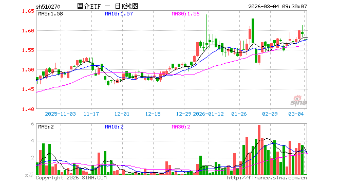 国企ETF(510270)业绩比较基准为上证国有企业100指数,管理人为中银基金管理有限公司,基金经理为赵建忠、李念,成立(2011-06-16)以来回报为85.68%,近一个月回报为3.34%。