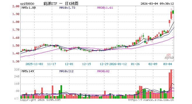 3月4日,能源ETF(159930)开盘涨0.73%,报1.941元。能源ETF(159930)重仓股方面,中国石油开盘涨4.11%,中国神华跌1.77%,中国石化涨3.58%,陕西煤业跌1.38%,中国海油涨2.51%,杰瑞股份跌2.01%,兖矿能源跌4.44%,中煤能源跌2.86%,山西焦煤跌1.72%,华阳股份跌1.75%。