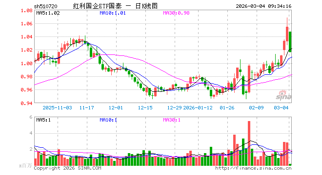 3月4日,红利国企ETF国泰(510720)开盘跌0.66%,报1.047元。红利国企ETF国泰(510720)重仓股方面,中远海控开盘跌2.77%,山煤国际跌2.26%,平煤股份跌0.56%,潞安环能跌1.54%,恒源煤电涨0.00%,陕西煤业跌1.38%,西部矿业跌3.88%,兖矿能源跌4.44%,四川路桥跌0.70%,厦门国贸跌0.58%。