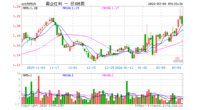 国企红利ETF(159515)业绩比较基准为中证国有企业红利指数收益率,管理人为鹏扬基金管理有限公司,基金经理为施红俊、王凯,成立(2023-08-25)以来回报为22.23%,近一个月回报为6.70%。