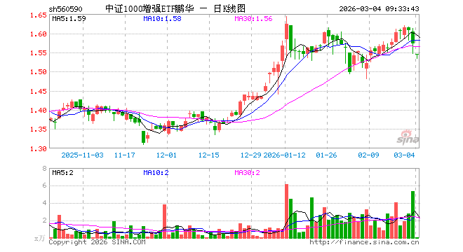 中证1000增强ETF鹏华(560590)业绩比较基准为中证1000指数收益率,管理人为鹏华基金管理有限公司,基金经理为寇斌权,成立(2023-09-01)以来回报为54.55%,近一个月回报为-0.33%。