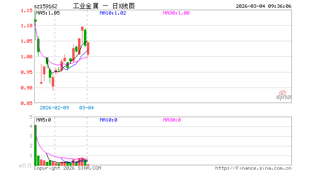 3月4日,工业有色ETF鹏华(159162)开盘跌2.61%,报1.006元。工业有色ETF鹏华(159162)重仓股方面,洛阳钼业开盘跌4.00%,北方稀土跌3.29%,中国铝业涨1.43%,兴业银锡跌4.11%,云铝股份涨2.59%,厦门钨业跌7.25%,江西铜业跌2.99%,锡业股份跌5.83%,天山铝业涨1.87%,西部矿业跌3.88%。