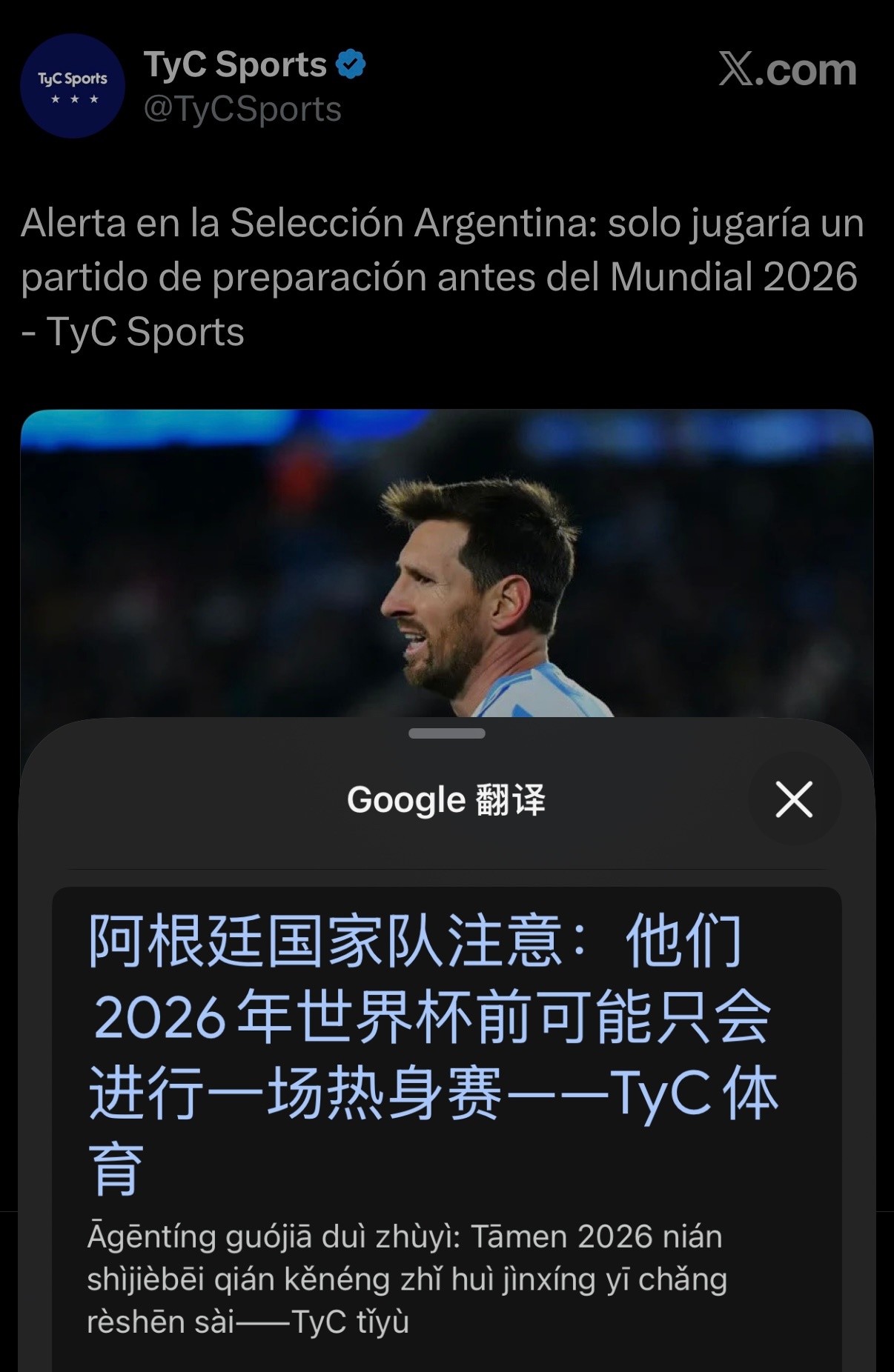 阿根廷国家队注意:他们2026年世界杯前可能只会进行一场热身赛。