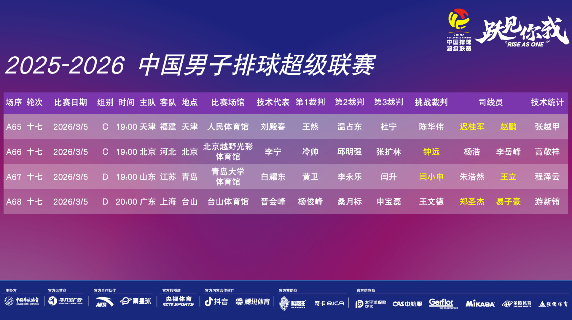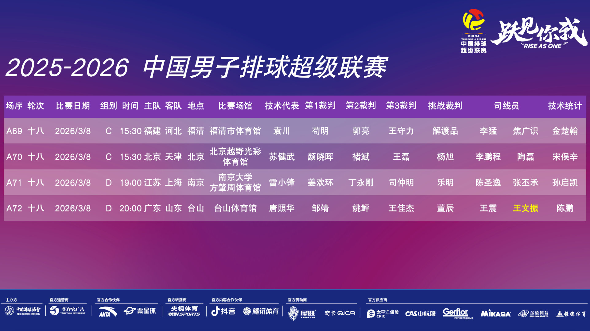 2026年3月4日-2026女足亚洲杯小组赛B组首轮 朝鲜3-0乌兹别克斯坦/中国2-0孟加拉国(中国女足取得开门红) 2026WCBA俱乐部杯决赛阶段1/4决赛循环赛首轮 北京65-78江苏/山西87-77合肥 2025-2026女排超级联赛A级季后赛第3轮(第17轮) 天津3-1逆转战胜河南(24-26 25-15 25-18 25-20)(天津女排终结两连败 获得季后赛首胜)/北京1-3被上海逆转(25-19 29-31 17-25 28-30)(上届亚军上海女排获得十二连胜/北京女排遭遇两连败) 部分重点赛事预告:CCTV5直播:19:30 2026中国女篮热身赛长沙站 中国-巴西 CCTV5+直播:18:55 2026女足亚洲杯小组赛C组首轮 越南-印度 CCTV5客户端直播:19:00(2场) 2025-2026女排超级联赛A级季后赛第3轮(第17轮) 山东-浙江/福建-江苏 13:00/15:00/17:00 B级季后赛第二阶段首轮(第16轮) A组 四川-上海青年队/江西-江苏青年队/深圳-山东青年队 B组 辽宁-福建青年队/云南-辽宁青年队/河北-南京师范大学 13:00/15:00/17:00 2025-2026男排超级联赛B级季后赛第二阶段首轮(第16轮) A组 四川-中山大学/湖北-上海青年队/辽宁-河北青年队 B组 浙江-广东青年队/河南-南昌大学/云南-福建青年队 13:00 2026女足亚洲杯小组赛C组首轮 日本-中国台北 其他:17:00/19:30 2026WCBA俱乐部杯决赛阶段1/4决赛循环赛第2轮 东莞(广东)-北京/四川-山西