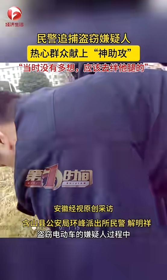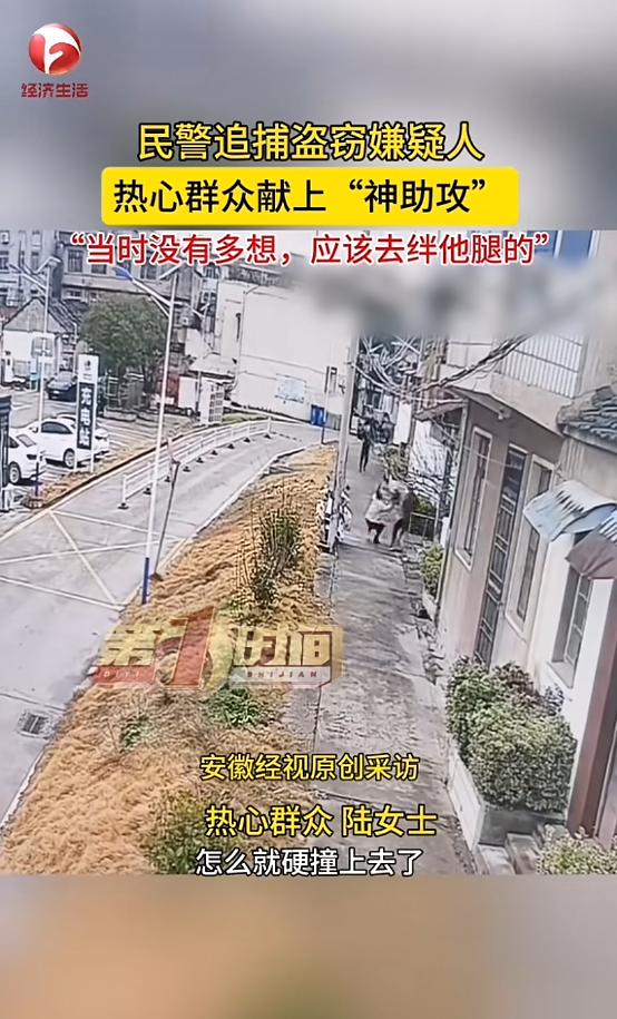 “路见不平拔刀相助!”近日,安徽含山,一女子出门时,看见前方有几位民警在追捕犯罪嫌疑人,眼看着嫌疑人就要从自己跟前跑过,女子灵机一动,在他擦肩而过的时候朝他一撞,两人都失去平衡摔倒在地上,随后嫌疑人很快被控制。网友:中国好市民! 群众给民警送锦旗的见得多了,可反过来,民警给群众送锦旗的您见过么? 据媒体3月2日报道,事发当日,陆女士正走在路上,看见前方远远的,有几位警察在追一个男子,不知不觉朝她所在的方向跑回来了。 陆女士心里一想,这可能是抓坏人的,自己可不能让坏人跑了。眼瞅着男子就要从自己身边经过,陆女士想伸腿把他绊倒。可是身体跟不上自己的想法,于是自己就硬生生朝男子撞了上去。 男子跑得速度很快,碰撞的一瞬间,双方都朝两边摔去。后面的警察看到女子帮忙,不由得又加快了速度。男子摔倒后,立即爬了起来,继续往前逃去。被撞的这一下让他速度慢了下来,没跑两步就被警察追上控制住了。 原来,警察当日是在抓捕一名盗窃嫌疑人,当时嫌疑人一看到警车就开始跑了,这才让警察追了许久。事后,民警给陆女士送了一面锦旗,上面写着“民间神助攻,抓贼立奇功”。 网友看后表示,陆女士真是好样的,巾帼不让须眉。正是这样勇敢的人民群众,成为警方在打击犯罪分子时的强大助力,让我们这个社会变得更加正能量! 信息来源:《热心路人的“神助攻”! 民警追捕盗窃嫌疑人,一位热心群众“直接就上去了”》AHTV第一时间