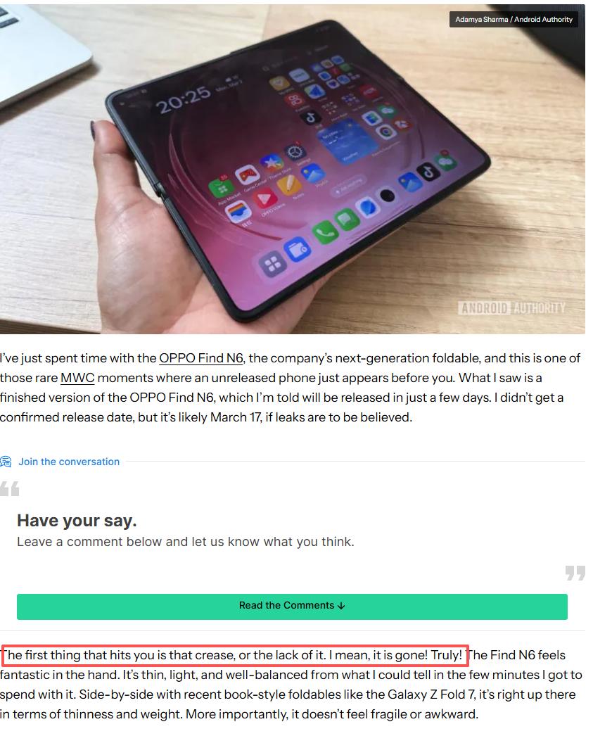 折叠屏大年苹果下场?网友:打不过OPPO 2026年绝对是折叠屏的“真香大年”,连苹果都坐不住要进场了! 但说实话,如果折痕没解决好,估计也不会卖很好! - 毕竟折痕时间一长就可能出现压痕加深、内屏受力不均,甚至漏液、爆屏风险。 苹果这次终于敢入场做折叠屏,网传也是因为折痕难题被攻克, 结果扒出来竟是照搬OPPO的供应链方案, 真假不论,但方向很明确——谁把折痕解决,谁才有资格定义下一代折叠屏。 - 而就最近几天OPPO官方预热及网上信息来看,Find N6在折痕控制这一块非常值得期待 比如,周意保今天发了街头盲测视频,把用了一个月的N6给路人闭眼摸, 10个人里只有2个猜对折叠方向,其中一个还是蒙的。 - 另外MWC现场外媒也拿着放大镜找折痕,各种角度翻转,几乎都看不到折痕 而且据说OPPO Find 6可不是简单的开箱平,是靠独家黑科技做到的真・久用无折痕, 从根源解决了折叠屏的最大痛点,妥妥的下一代折叠屏标杆! - 再说说大家最关心的价格,现在存储芯片全线涨价, 苹果折叠屏网传要卖到 2W+,Find N6虽说网传要加价 2000, 但架不住早发布早享受还更便宜,加上久用平整的硬核体验,就算涨价, 感觉依旧是近两年最香的折叠屏~ OPPOFindN6 2026 折叠屏大年 无折痕折叠屏 数码种草 折叠屏天花板视觉无折痕 iPhoneFold 换机建议