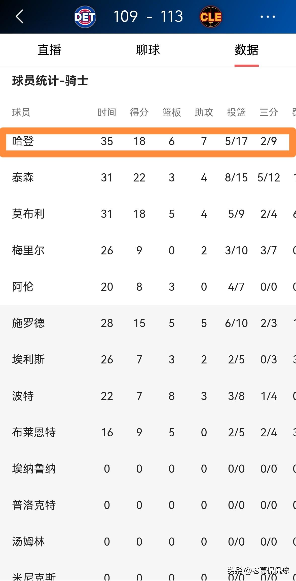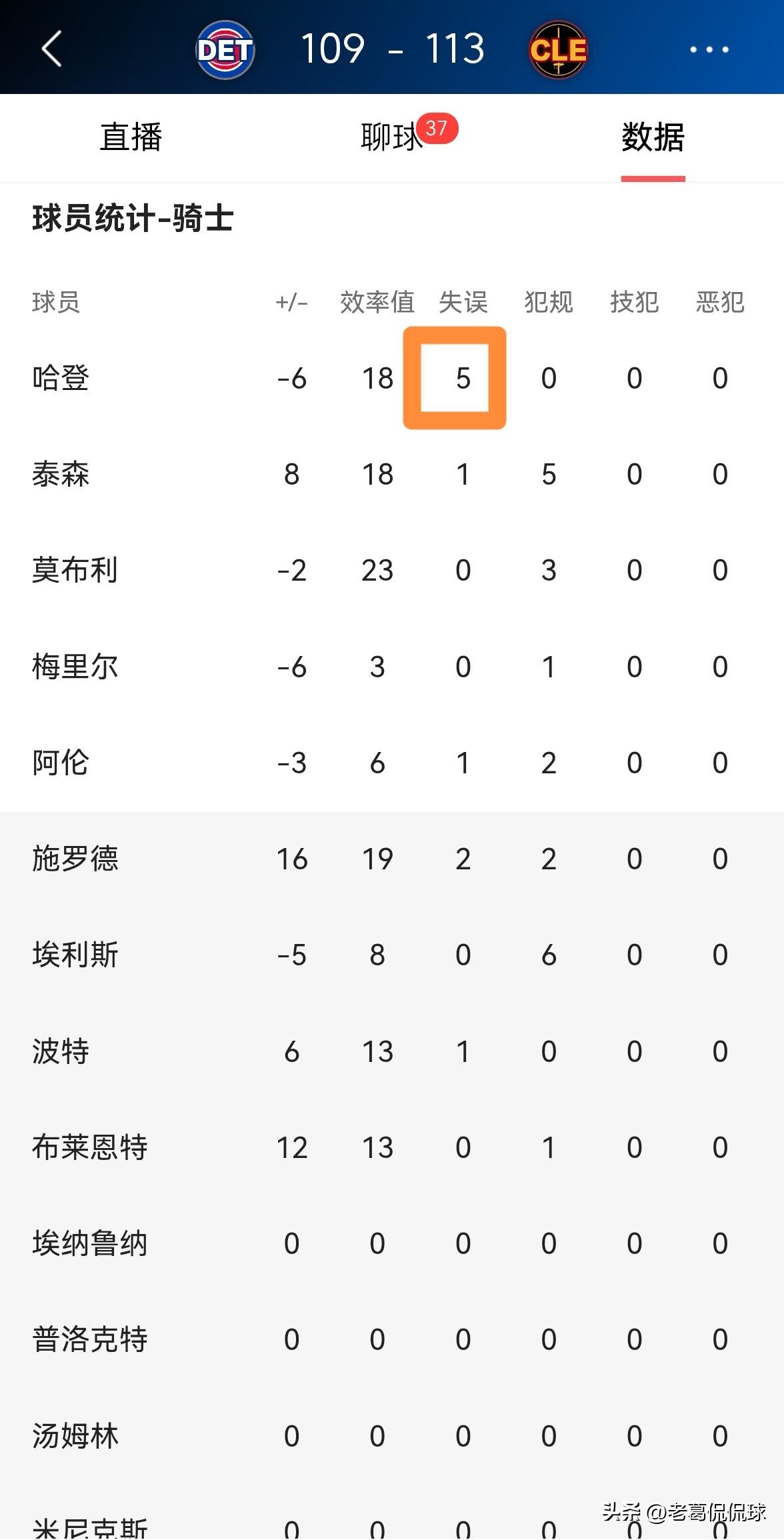 我强烈建议骑士将哈登退回给快船!虽然今天骑士在主场以113:109险胜活塞,但是哈登再次展现出了自己的拉胯本性,尤其是在关键的第四节比赛中,哈登的连续失误险些葬送了球队的胜利果实。 全场比赛下来,哈登首发出战35分钟,投篮17中5,其中三分球9中2、罚球6中6极其低效的得到18分,还出现了全队最多的5次失误,他的场上正负值为-6。 事实再次证明,每当比赛进行到了关键时刻,哈登就会掉链子,因此我强烈建议骑士将哈登退回给快船。