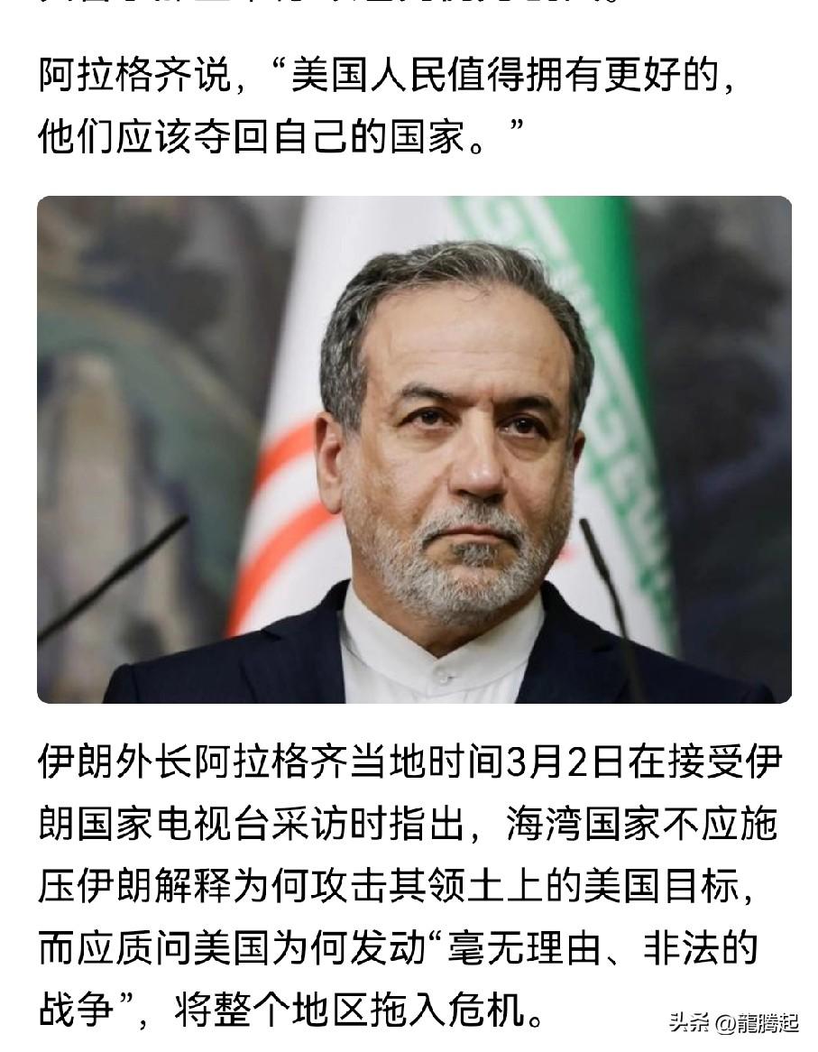 据CCTV国际时讯,伊朗外长阿拉格齐昨天发帖说:鲁比奥承认美国自愿为以色列参战。“美国优先”变成了“以色列优先”? 特朗普向来标榜“美国优先”,然而这一次美国对伊朗开战,却很可能是被以色列拖下了水,中了内塔尼亚胡的计。据福克斯新闻,美国国务卿鲁比奥昨天在国会向记者说明美以袭击伊朗的理由时说:因为当时知道以色列会采取行动,这可能会引发对美军的袭击,所以美国对伊朗采取先发制人的打击。 但是国会议员并不买账,众议员乔安金 ·卡斯特罗在 X 上回应说:“鲁比奥部长的言论表明,以色列执意对伊朗发动攻击,从而将美国军队置于危险之中,而政府方面也难辞其咎——他们参与了这场战争,而非劝阻对方。” 这正如伊朗外长阿拉格齐所说:“伊朗从未对美国构成任何所谓威胁。因此,美国人和伊朗人的流血牺牲,应该归咎于那些奉行‘以色列优先’的人”。伊朗外长最后还说,“美国人民值得拥有最好的,他们应该夺回自己的国家”。言外之意就是美国已经失去了独立,呼吁美国不要再受以色列的控制。阿拉格齐还不忘安抚中东各国,不应施压伊朗解释为什么攻击其领土上的美军基地,而应质问美国为什么发动“毫无理由、非法的战争”,将整个地区拖入危机。三言两语之间离间了中东各国与美国的关系,这实属高明。 据央视,当地时间3月3日,特朗普在白宫与德国总理默茨会晤时说,美方此前与伊朗进行谈判,但根据谈判进展判断,伊朗“准备率先发动攻击”,包括针对以色列及其他国家的打击,因此美国决定采取“先发制人”的军事行动。他否认被以色列“拖入战争”,称“如果有的话,可能是我推动了以色列的手”。显然这种解释,非常的牵强。 目前来看,美国已经被拖入了战争。伊朗正在进行激烈的反抗,战争不会马上结束。看来此次特朗普是骑虎难下,陷入战争泥潭的可能性很大,美国或正在犯战略错误。这对中华民族伟大复兴,对解决台湾问题是有利的,让美国疯狂吧! 阿拉格齐 阿拉格齐 鲁比奥 特朗普争议发言 特朗普争议发言 特朗普雷人言论 伊朗怒批美国 美以袭击伊朗 以色列 以色列 伊朗 美军攻打伊朗 美国对伊朗开战 美国入侵伊朗 美国对伊朗空袭