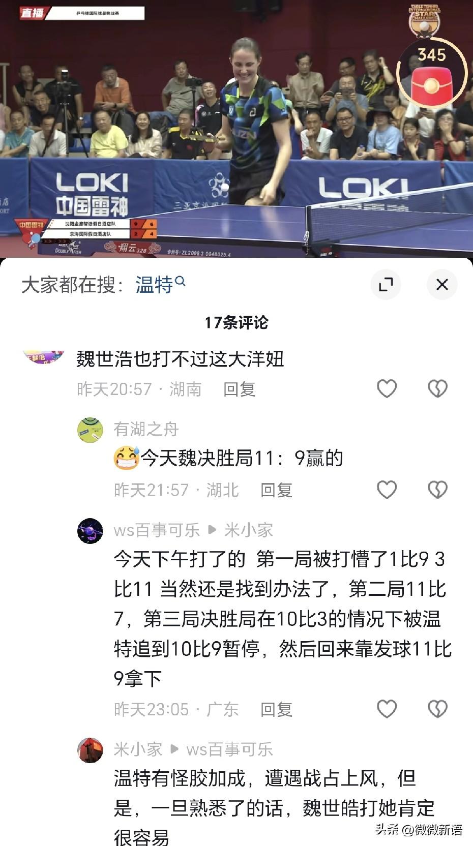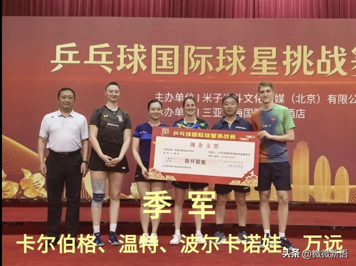 温特是在快乐乒乓,打的很开心。 温特打完新加坡大满贯后,就赶往三亚打了乒乓球国际挑战赛,温特、卡尔伯格、万远、卡尔伯格是拿到了季军。冠军是魏世皓、于何一、刘家良、赵尚,昨天看了一下比赛,温特他们是混双打对面的男双,单打温特是输给了魏世皓,不过魏世皓也是打到决胜局以11-9才赢的温特,看到有网友说:“温特有怪胶加成,遭遇战占上风,但是熟悉了的话,魏世皓打她肯定容易”。 确实温特也是刚刚拿了大满贯赛四强,赢了朱雨玲,赢了大迪,手感也比赛热,如果和女选手打比赛,女选手不一定能赢温特。这个比赛大家打的都很开心,温特赢了比赛的时候,还给大家来了个表演,开心乒乓。 新加坡大满贯赛,温特拿到900积分,现在世界排名来到第11位,温特的目标是挺进前十。温特他们应该在海南打完比赛,就在那里训练备战重庆冠军赛了,3月10日比赛就开始,也来不及回去了。