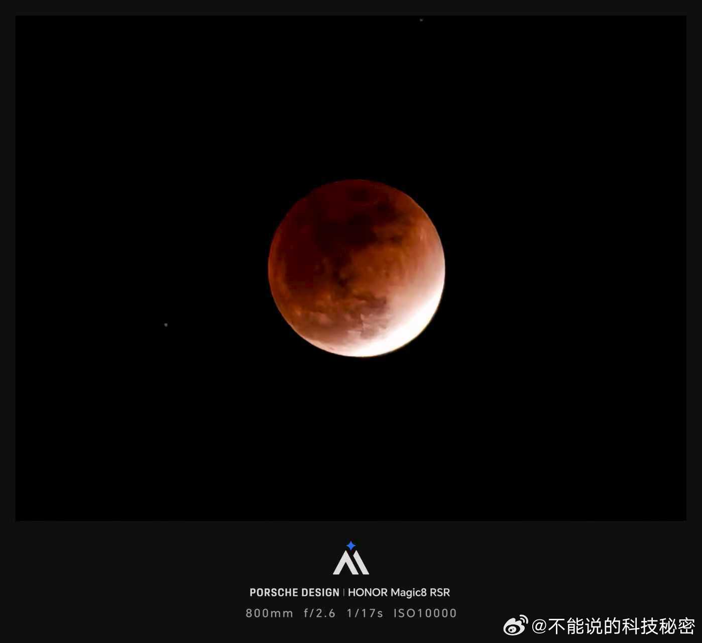当元宵节遇上月全食,难得一遇的天象奇观,荣耀Magic8 Pro 荣耀Magic8RSR保时捷设计 搭配增距镜专业影像套装,追月也成了简单事情月全食一起去看月全食