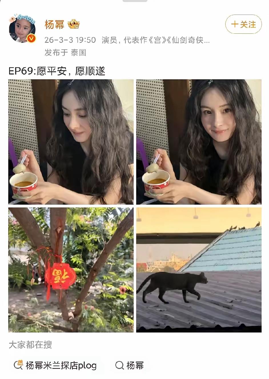 3.3日,杨幂在社交平台分享自己的照片,还配了两张其它的图片,照片中杨幂最新造型
