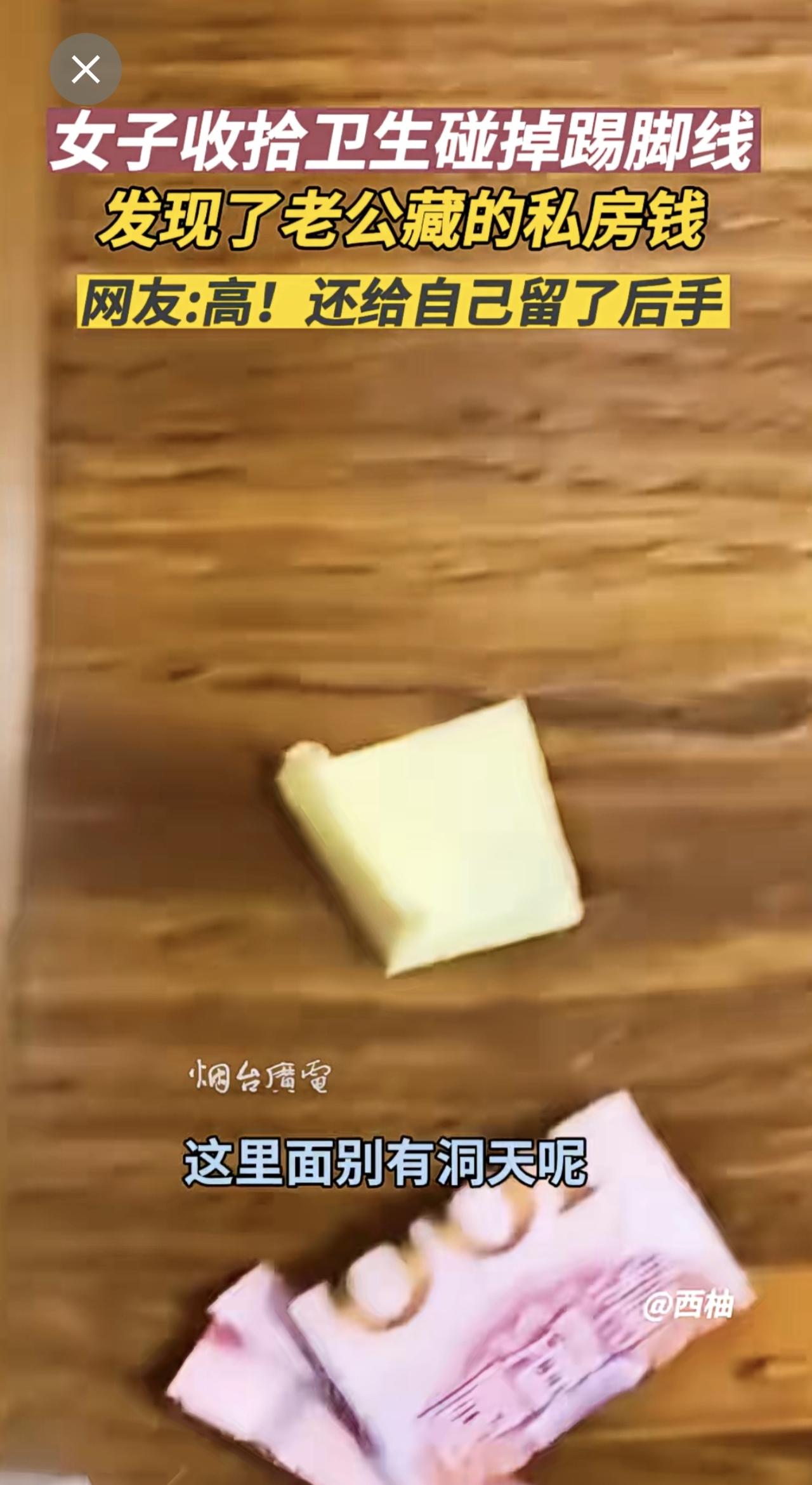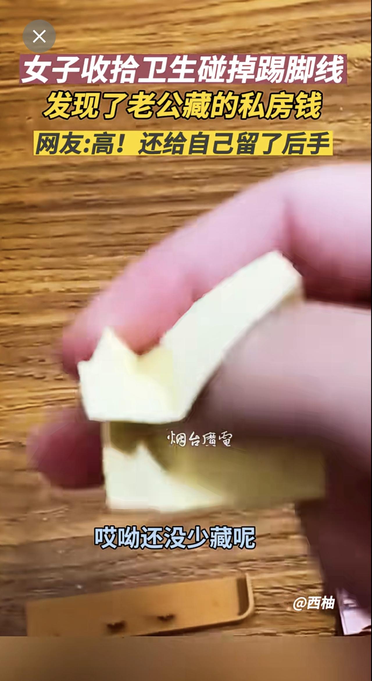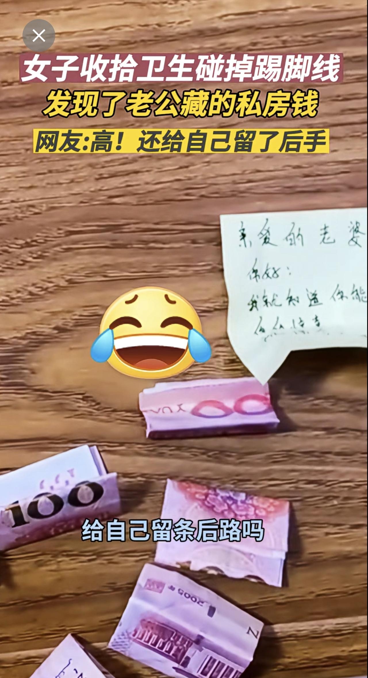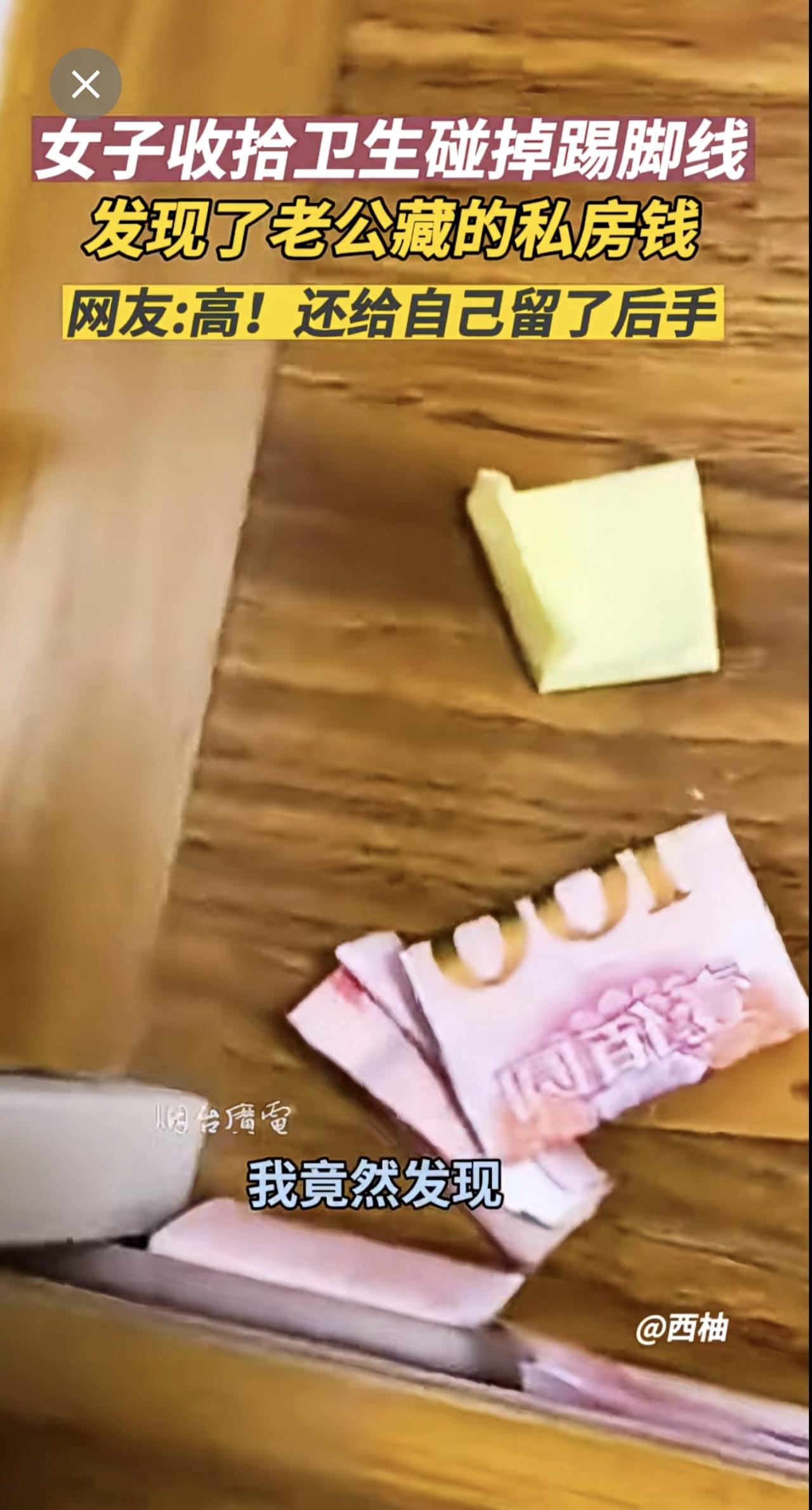 男子私房钱藏踢脚线被发现,还有张“保命纸条”