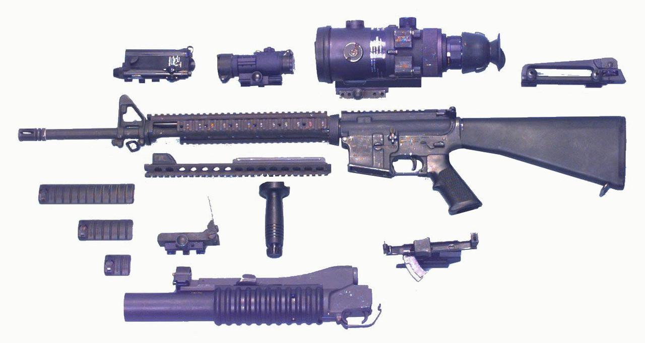 M16A4的前身其实是1994年开始试验的M16A2E4,但当时的M16A2E4只是平顶机匣式的M16A2,其外观和柯尔特的商业型M16A3(910型)相同,但不能连发。在1997年M16A2E4开始配上KAC公司生产的XM5 RAS导轨护木。其后,装配上RAS的M16A2E4被正式定型为M16A4,而XM5 RAS也正式改称为M5 RAS。 M16A4是将枪械作为一个模块、火控系统作为一个模块来设计的。瞄具采用了许多的新技术,但枪械本身改进不多。机匣为平顶式,上端有MIL-STD-1913皮卡汀尼导轨,可安装瞄准设备或可拆卸提把。枪机和其他M16系列一样有特富龙润滑涂层,以提供可靠性。重型枪管上刻有适用的枪弹、膛线形成的数字。美国陆军和海军陆战队的M16A4均采用KAC公司的M5 RAS护木,可安装直握把、激光指示器、战术灯和其他配件,护木内侧有铝制的隔热屏。固定式枪托后部可装擦拭工具。由于完整的M16A4系统并不只是一支枪,还包括一堆安装在皮卡汀尼导轨上的可选配件,因此在美国陆军野战手册中,M16A4也被称为M16A4 MWS,即模块化武器系统。 M16系列在3发点射和连发上来回变化,M16A2由连发改为3发点射,M16A3又改成了连发,如今到M16A4又成了3发点射。M16A4上的单发/点射机构也是M16A2的点射棘轮机构。 M16A4的瞄准设备包括AN/PEQ-5激光指示器、M68近战光学瞄准镜(CCO)、全息衍射镜(HDS)和AN/PVS-14夜视瞄准系统等。据说在M16A4的基础上,柯尔特公司已制成同时具有单发、点射、全自动射击三种射击方式的型号,可能会以M16A5的名称亮相,不过原本M16系列的击发机构无法同时具有三种发射方式,如此看来M16A5必定要改用新的击发机构。
