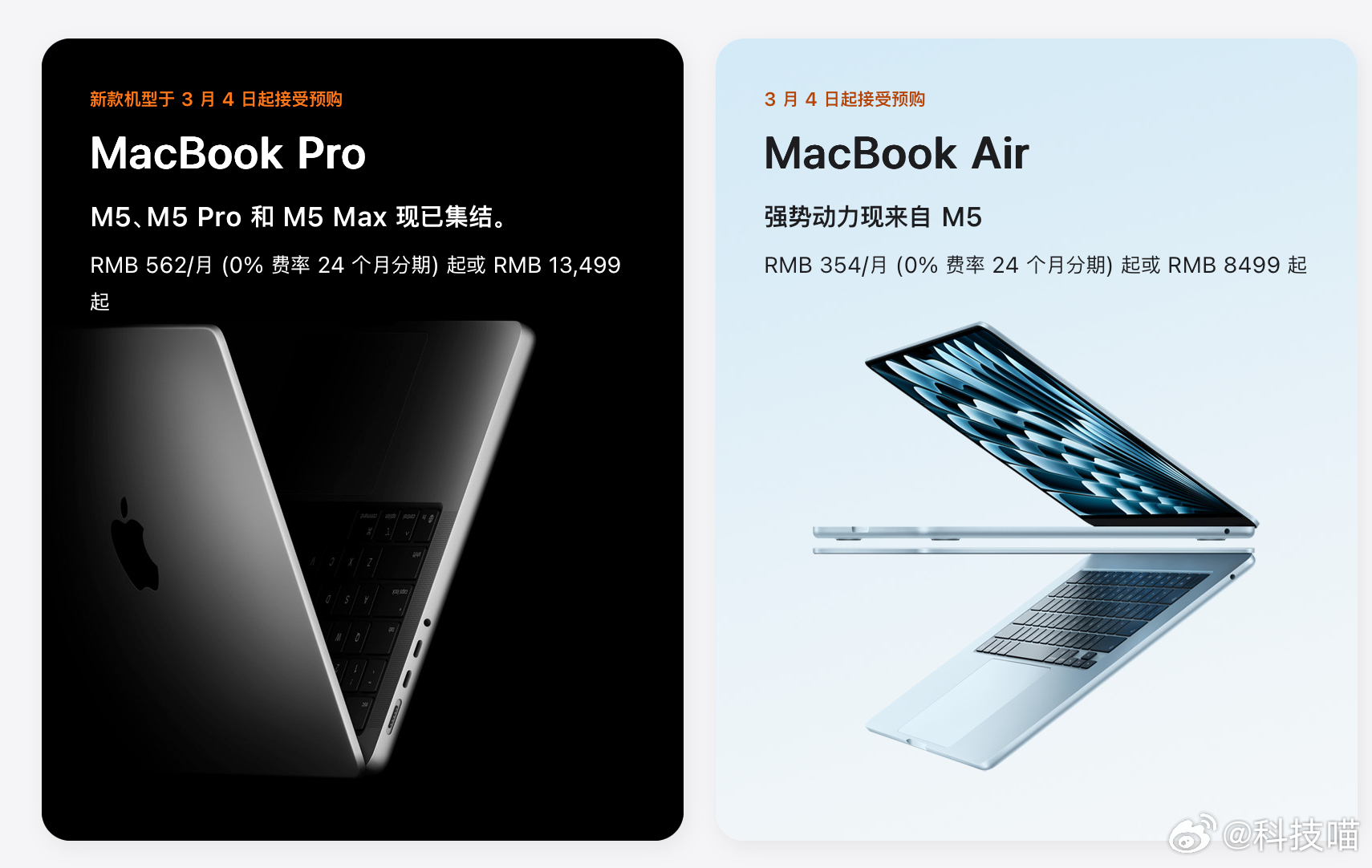 新款MacBook Air 13.6 / 15.3 英寸(M5)13.6 英寸:8,499 起15.3 英寸:9,999 起
