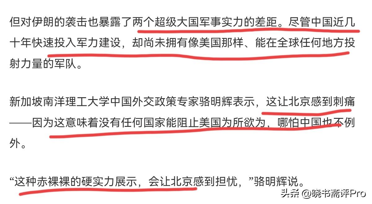 纽约时报刊文表示,美国借助对伊朗的袭击赤裸裸的展现自身实力,对于中国无疑是刺痛!3月4日,纽约时报刊文表示,对伊朗的袭击暴露了两个超级大国军事实力的差距。尽管中国近几十年快速投入军力建设,却尚未拥有像美国那样、能在全球任何地方投射力量的军队,这无疑让北京感到刺痛。 因为这意味着没有任何国家能阻止美国为所欲为,哪怕中国也不例外。这种赤裸裸的硬实力展示,当然会让北京感到担忧。很显然,依美媒来看,这一次对伊朗的打击,展现了美国的强大实力,这对中国形成了震慑。不过,与美媒观察相反,我们似乎看见了一个越来越力不从心的美国。 面对武器并不算先进的伊朗,美国巴林中央司令部指挥所、卡塔尔乌代德雷达、阿联酋富查伊拉后勤枢纽、科威特指挥中心遭到结构性损毁,美国的第五舰队司令部、谢赫伊萨空军基地指挥楼与燃料库被摧毁。伊朗正以实际行动证明,美国的防空神话不说是形同虚设,但最起码也是漏洞百出。而科威特损失3架F-15E,美军被迫后撤航母,更有消息指出美国往本土调派加油机。 并考虑把韩国萨德等系统运往中东以解燃眉之急,种种窘迫状况,这样的表现,让人觉得那个碾压级表现的美军已经不复存在了。美媒觉得美国正炫耀实力,让我们害怕。但是,事实证明美国的表现可并不漂亮。一句话,美军的滤镜正在一步步破碎。显然,真正感到刺痛和焦虑的,不会是中国,而是越来越压不住阵脚、越来越守不住霸权、越来越被世界看清外强中干的美国。