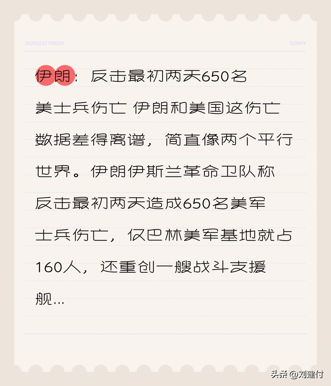 伊朗:反击最初两天650名美士兵伤亡 伊朗和美国这伤亡数据差得离谱,简直像两个平行世界。伊朗伊斯兰革命卫队称反击最初两天造成650名美军士兵伤亡,仅巴林美军基地就占160人,还重创一艘战斗支援舰,逼“林肯”号航母逃窜。可美军中央司令部公布6人死亡、18人重伤,还说伊朗“散播假消息”。 双方说法无法核实,战争里这种“罗生门”常见。但就算按美方数据,这也是美军近年在中东少见的损失。而且伊朗反击范围广,多点开花,有备而来。白宫这下头疼了,近六成美国民众不赞成对伊动武,国会还想限制总统战争权力,特朗普估计头都大了。