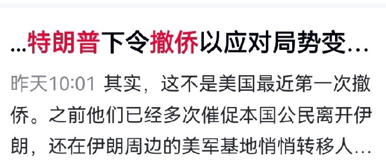 特朗普下死命令,中东14国撤侨,美国要摊牌了? 美国突然向中东14国发布紧急撤侨令,绝非简单预警,而是全面开战的前奏。放弃外交、清空人员,就是为了放开手脚大打一场。 美以原本想速战速决,却被伊朗拖入消耗战。美军高端防空拦不起廉价无人机与导弹,基地处处高危,再打下去只会越耗越亏。国内反战情绪、选举压力、财政赤字,每一条都是美国的致命短板。 特朗普扬言派地面部队,一旦踏进去,就是新版阿富汗泥潭。 美国陷得越深,亚太分身乏术,俄罗斯战略空间更大。 中俄不急动手,就在等美国这一步错棋。 对此,你怎么看? 美伊冲突 中东局势 国际政治