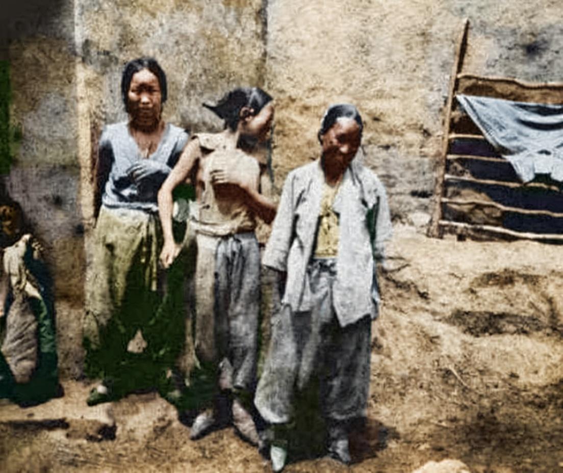 这张照片是一张晚清时期三位底层贫困妇女的真实处境,照片中的三位女性衣衫褴褛,几乎无法蔽体,这并非刻意为之,而是极度贫困下的无奈选择。其中一位妇女因羞于面对镜头而转过了头,这细微的动作更添了几分心酸。 在晚清,以慈禧太后为代表的统治阶层过着极尽奢华的生活,而占人口绝大多数的底层百姓却在温饱线上挣扎。这张照片撕下了“天朝上国”的最后一块遮羞布,让我们看到了王朝覆灭前夜的残酷现实。