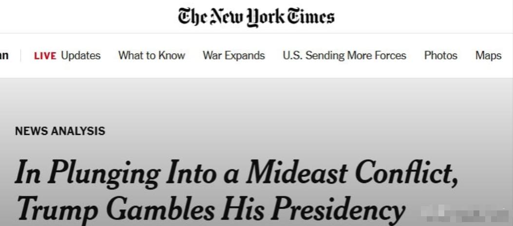 《纽约时报》:特朗普因其伊朗冒险行动而断送了自己的总统生涯 《纽约时报》发文称,特朗普曾承诺将国家从无休止战争中解脱出来的美国总统,却一头扎进了最危险的一场战争之中。特朗普发动了针对伊朗的全面行动,这是在孤注一掷,赌注不仅是士兵的生命,还有他自己的政治前途。 先说说特朗普当初是怎么当上总统的。他竞选的时候,最让人动心的承诺就是,不让美国再打那些没完没了的仗。 那时候,美国在中东打了好多年仗,死了不少士兵,花了好多钱,美国老百姓早就烦透了,就想安安稳稳过日子。 特朗普抓住大家的心思,天天说自己不会让美国再卷入没必要的战争,会把美军接回家,还能省钱,不少人就是信了这话,才把票投给了他。 可谁也没料到,就是这个说要让美国远离战争的总统,现在却主动打了伊朗,而且这场仗他赌上了美国士兵的命,也赌上了自己的总统前程。 可就现在这个情形来看,特朗普大概率是赌输了,首先,他忘了自己当初的承诺,那些投票给他的人觉得被欺骗了,本来选他就是不想再打仗,结果他主动挑事,大家再也不信他了,他的支持率一下子就掉下来了。 而且,美国国内大部分人都反对这场仗,各地还爆发了反战游行,大家都不想再卷入无休止的战争。 更麻烦的是,他打伊朗没经过国会同意,美国法律规定,打仗的权力在国会,总统说了不算,这就让他遭到了很多议员的反对,还被指责滥用权力。 在这场战争中,有6名美国士兵在战争中被炸死,还有人重伤,这让很多之前支持他的人也变了心,连他自己党派里都有不少人不支持他了。 另外,打仗导致油价大涨,美国老百姓开车、取暖都变贵了,大家更不满了。 最让人失望的是,他打之前根本没想好怎么结束这场仗,嘴上说四五周就能打完,实际根本控制不住,甚至在演讲时还扯别的话题,大家都觉得他根本不重视这场仗,也不重视士兵的命。 《纽约时报》说,这场仗就是特朗普的一场豪赌,他想靠打仗扭转局势,结果输得一败涂地。 他不是为了美国安全,就是为了自己的总统位置,太急功近利,忘了自己的承诺,也忘了老百姓想和平的心愿,最终,这场冒险的战争,将会让他彻底失去了民心,断送自己的总统生涯。