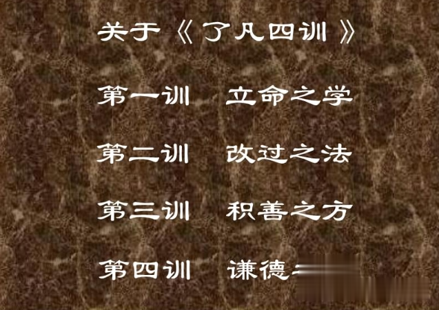 通过研读《了凡四训》,我们可以知因果,晓命运、增福报,避灾祸。作者留下立命之学、改过之法、积善之方、谦德之效这四种相辅相成的改命方法,令人们有理可依,有据可行,有命可改,走向增长阴德福报,积功累德的福慧人生。