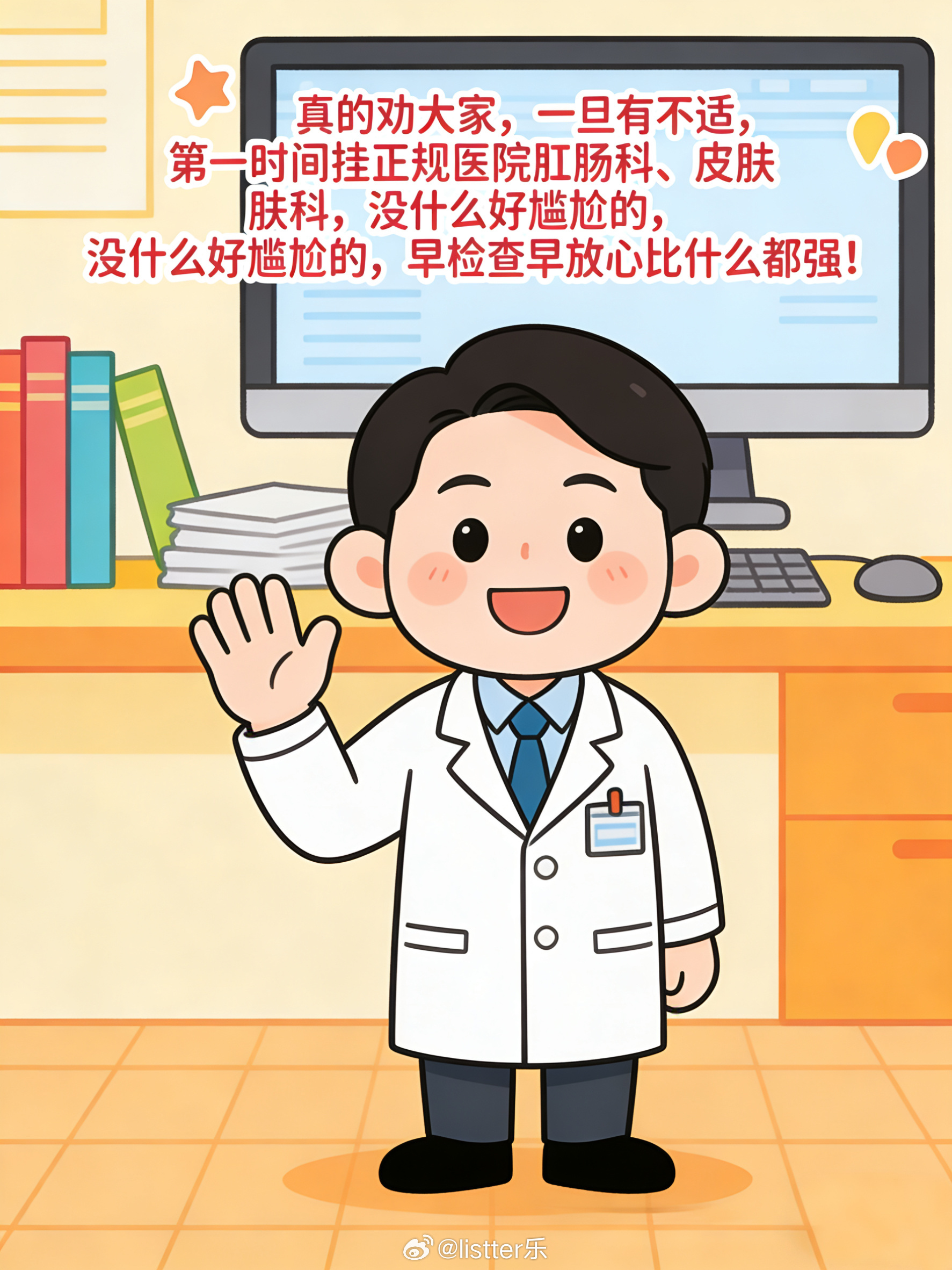 真的劝大家,一旦有不适,第一时间挂正规医院肛肠科、皮肤科,没什么好尴尬的,早检查早放心比什么都强!