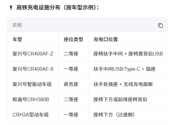 高铁上哪些电子设备可以充电?