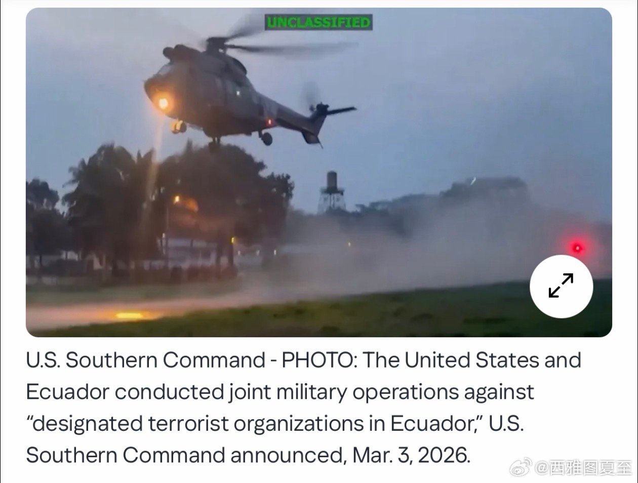 美国和厄瓜多尔政府军,展开联合行动打击在厄瓜多尔境内的贩毒集团美军公布了视频,没