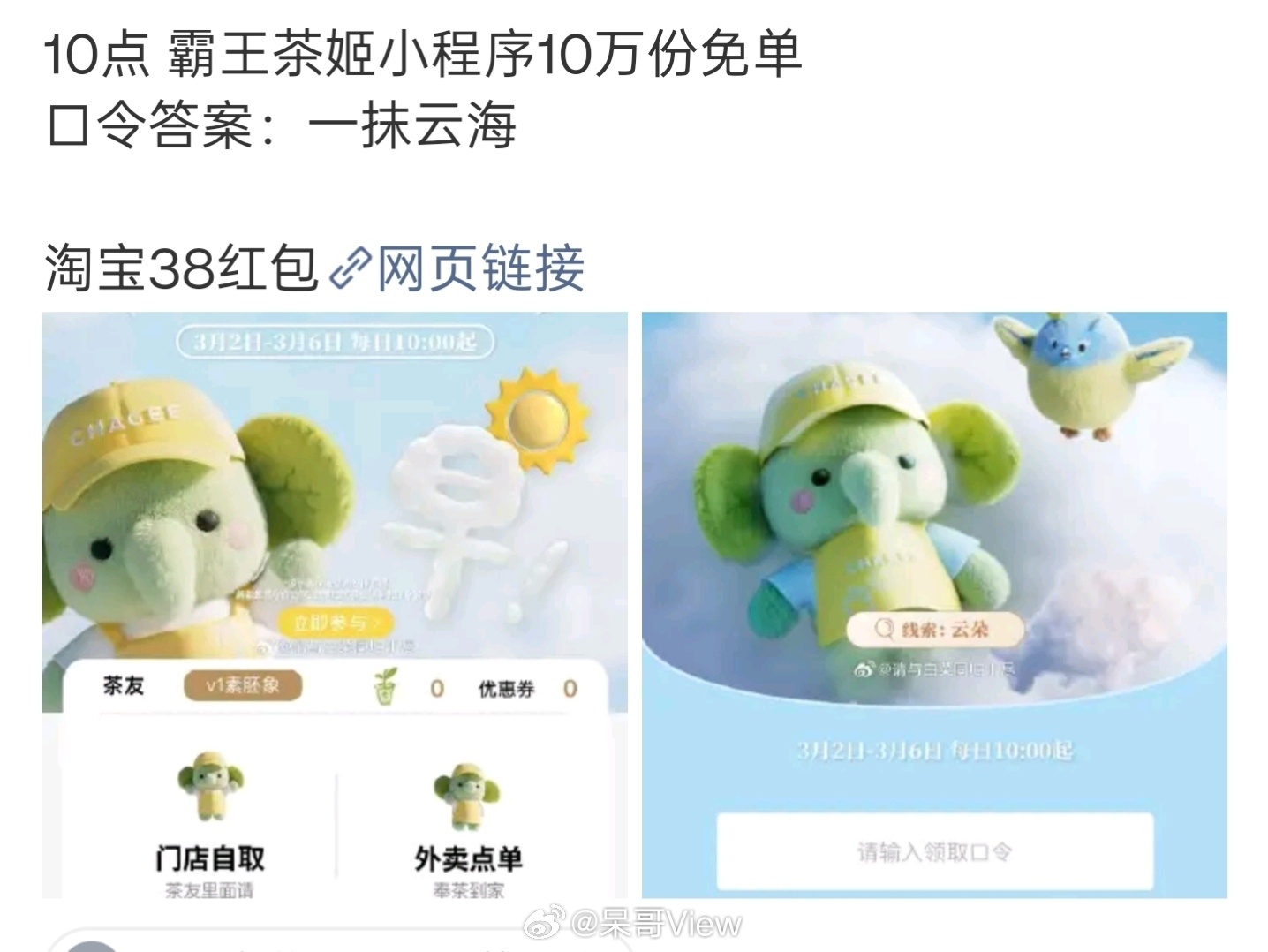 霸王茶姬活动之前看到很多人说答案是一抹云海,结果是假的。