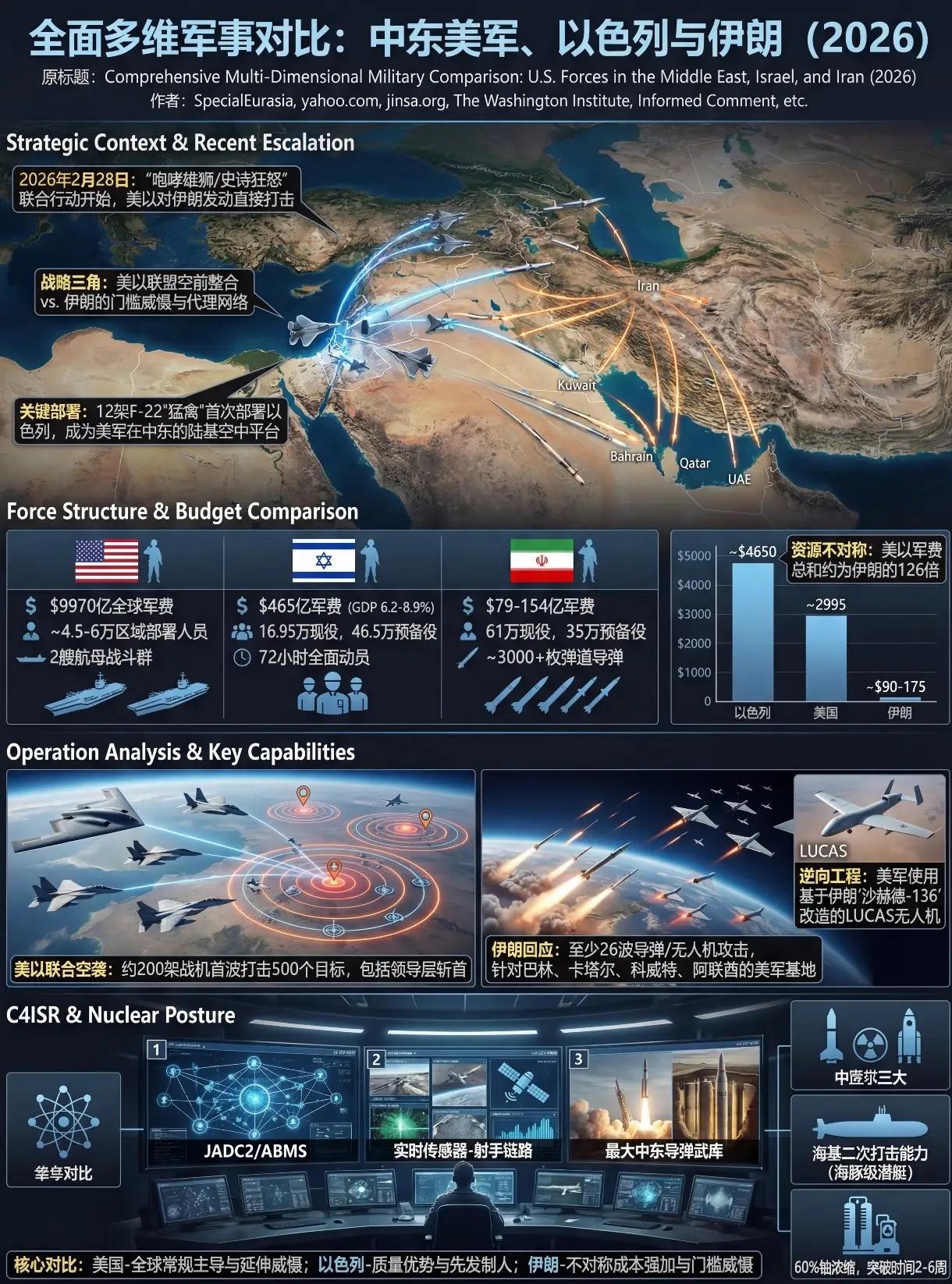 伊朗飞行员的自杀式冲锋! 2026年3月2日夜,波斯湾上空,两架伊朗苏-24"击剑手"战斗轰炸机在没有电子支援和护航的情况下,闯入卡塔尔乌代德空军基地防空圈。该基地是美军在中东的核心据点,部署有"爱国者"PAC-3、"萨德"反导系统及F-35、F-15E拦截网。 对这款1970年代服役的战机而言,这近乎自杀式任务。最终,两架苏-24被卡塔尔空军击落,但这并非鲁莽送死,而是一场静心的战术设计。 伊朗空军主力由越战时期的F-4"鬼怪"、服役40年的F-14"雄猫"及米格-29组成,被称为"飞行博物馆"。 2月28日美以"咆哮的狮子"行动摧毁了伊朗机场、雷达站和指挥中心。 面对F-35隐身突防和精确制导炸弹,地面战机面临被"斩首"风险。 升空作战成为被动选择——既为反击,也为牵制,迫使美以分兵拦截,缓解地面和导弹部队压力。 苏-24作为重型变后掠翼战斗轰炸机,它拥有伊朗空军最大的载弹量和较远航程。 因此战术意图明确:利用低空突防绕过预警雷达,即便无法摧毁乌代德基地的AN/FPS-132预警雷达,也要向海湾国家传递信号——允许美军驻扎的国家,将成为打击伊朗的目标。 这种"非对称置换战术",旨在动摇美军盟友体系,逼迫卡塔尔等国在袖手旁观与支持美国之间,重新抉择。 德黑兰和伊斯法罕上空,伊朗飞行员驾驶米格-29甚至雅克-130教练机强行起飞。 这些飞机无隐身能力、缺乏先进电子战系统,在F-35和F/A-18E/F面前如同裸靶。 但飞行员以决死冲锋宣示领空尊严,为弹道导弹部队争取发射窗口。前72小时高强度对抗中,伊朗损失数十架战机,但这种韧性造成美军防空系统混乱,甚至间接导致F-15E被友军误击。 随着美以增兵,中东上空加油机和战机规模扩大,伊朗这种"亮剑"式抵抗虽悲壮,却预示更惨烈的消耗战。对伊朗而言,这不仅是军事对抗,更是关乎国运的心理博弈。