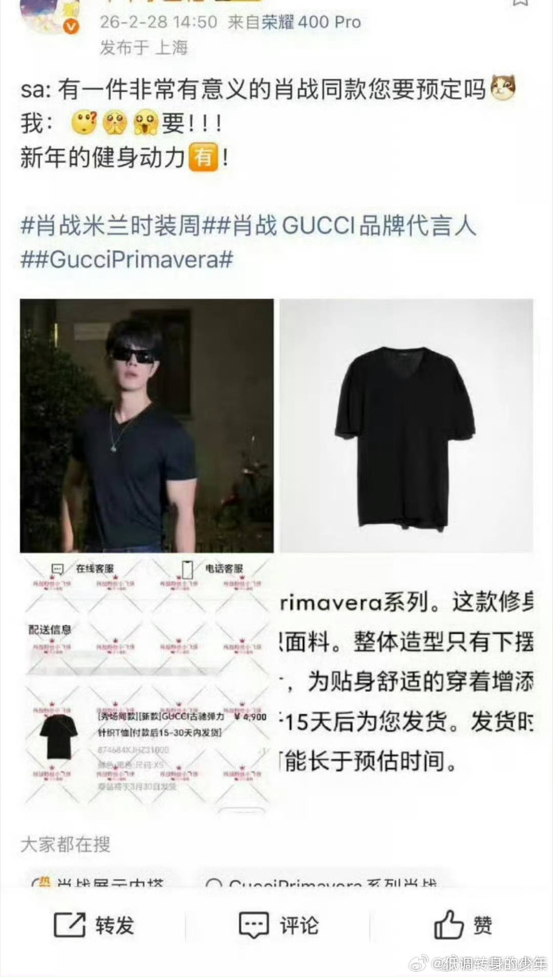 肖战连体T恤肖战穿的根本不是连体T恤,而是Gucci Primavera 系列弹力针织T恤!已经有人get同款了,有些嘿yxh号真是造💊无底线肖战连体t恤