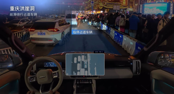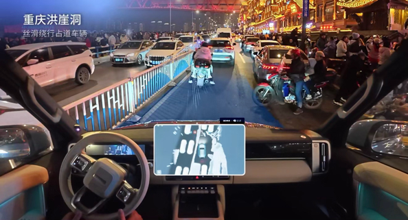 昨天看了央视直播的iCAR V27技术发布会,展示了V27在重庆的辅助系统驾驶表现,我研究了一下重庆路测的视频,感觉iCAR V27这套系统又变强了。去重庆旅游过的应该都知道晚上的洪崖洞是人堵车也堵,iCAR V27在两条车道的路上行驶时,能够稳定控速跟车,在有临时占道的车辆和电摩超车的情况下,它可以轻松找到左侧车道行驶车辆留出的空隙进行并线和让行电摩,从这点就能看出这台车的预判、绕行能力是相当不错的。而路边有临时上下客的车辆时,它也能做到轻松绕行,从SR界面来看,距离和时机把握的恰到好处。