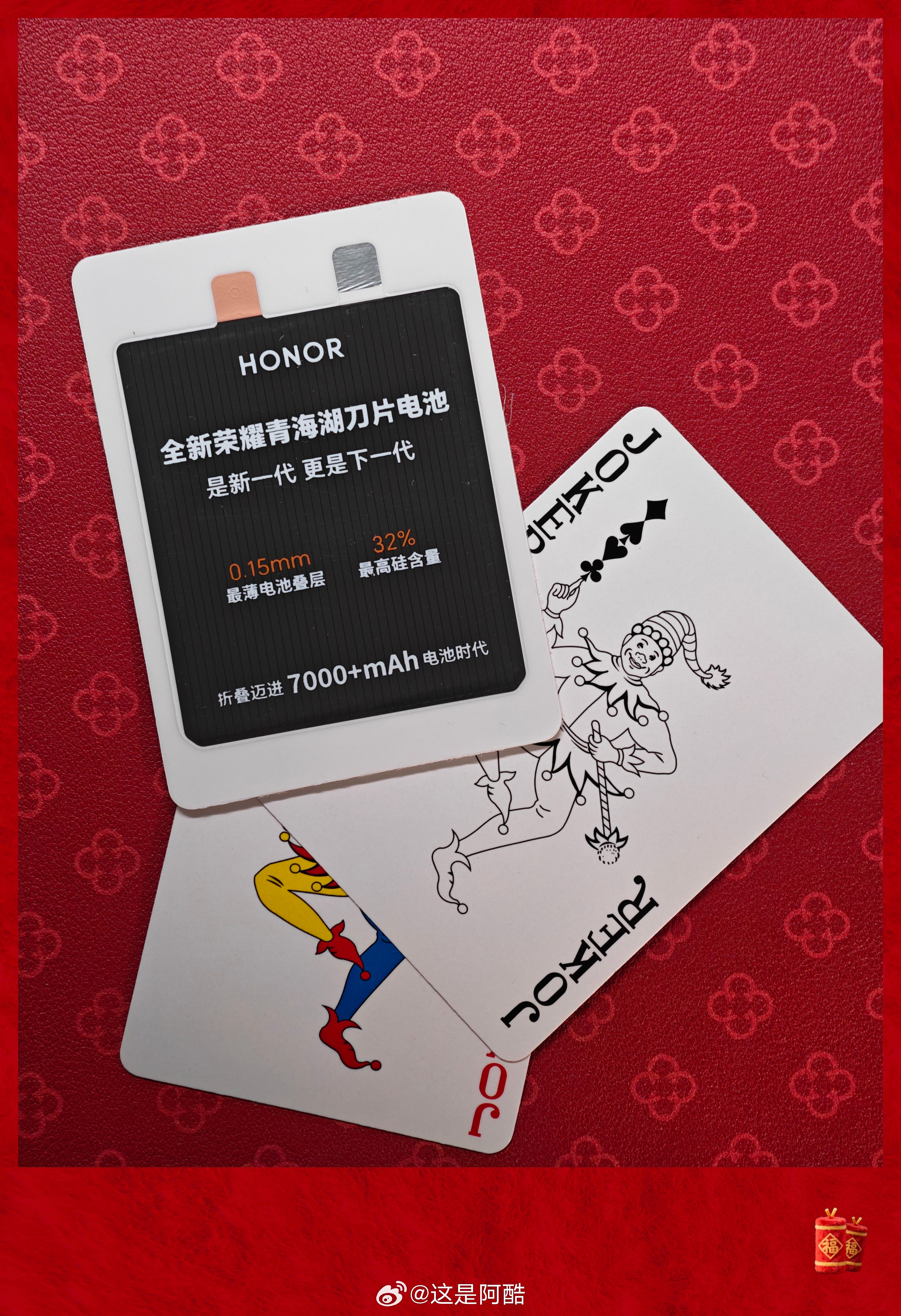 荣耀寄来了一副扑克牌,最夸张的是扑克牌里面还塞了一块电池?单纯以肉眼看根本看不出来区别!青海湖刀片电池这可是比刀片都要薄了啊?这代Magic V6这续航不得直接起飞