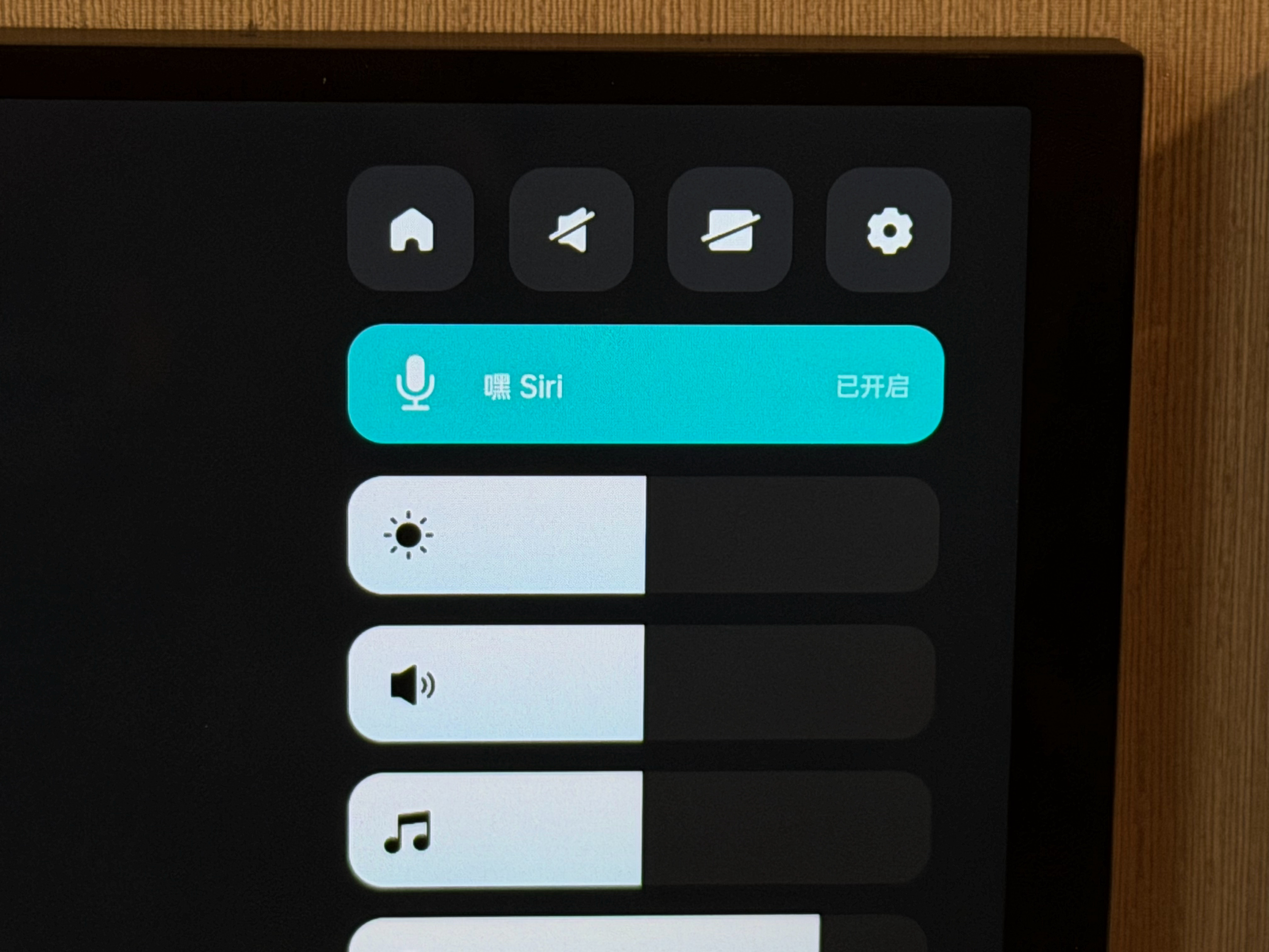这是全球首款支持 Siri 的全屋智能中控屏,现在用 Siri 来直接控制家里的 Homekit 智能家居了,也可以帮你记提醒事项、问天气。可以在 Aqara 自己的语音助手小乔和 Siri 之间切换。