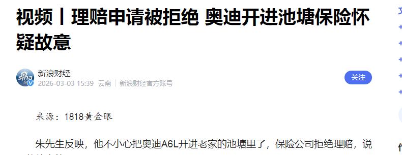 安徽六安,男子开奥迪A6L回老家看母亲,一不小心把车开进池塘!他从车窗爬出来,车子却因为泡水报废了。本想着保险能赔,流程都走完了,突然收到一纸拒赔通知:说他是故意的!保险公司拒绝理赔,不服去告。男子懵圈:难道我故意把40万的车开进水里? 你敢信,车泡水以后,朱先生人安全爬出来,只喝了几口水,好歹没什么大事,但车……那是基本报废了。 当晚就吊车拉起来,一看就是不能再开的节奏。 后面他老老实实照保险公司的流程走,人保查勘员亲自到场,那会儿还说让朱先生把剩下的贷款先还清,车辆绿本寄回去,公司拍卖残值,保险负责尾款赔付——听这方案很正常吧? 朱先生二话不说都配合了,本金、流程一个不落,心想着车完蛋了,好歹保险能顶一顶吧。 商业车损险保了三十六万多呢,车买回来也还没几年,新轮胎都刚换,怎么都能按规赔点吧? 结果你猜后面出啥幺蛾子。 保险公司前头还说“没啥大问题”,等到2026年1月一纸拒赔通知直接砸下来,理由让人大跌眼镜——“你这是自己造事故,骗保!”说白了,就是怀疑他故意让自家车报废,为了拿赔付款。 这操作谁能忍?离谱吧?朱先生说绝不认。 要是真的为了赔那敲定的36万多理赔金,拿自己的命作赌注?这可不是小说,是真实发生的。 保险公司可不是空口白话直接拒绝,他拿出来了第三方的鉴定报告。 报告说,这条村口下坡小道才2.7米宽,朱先生没受外界干扰,车自己大幅度转弯绕开路上的木棍,下水的瞬间车身转角二十七度八,方向盘得大半圈。 落水角度三十六度六,根本不像认认真真解释说的“弯腰捡手机踩错油门”,操作上有点太“精”。 保险公司就抓住了这个“动作不像走神误操作”,怀疑他主观故意,即使配合采访、做所有调查也没改变结果。 涉及数据得明说!车买时43万多,保额36万多,比市值高不少,因为同款二手市场就25~30万。 理论上讲,万一真想“骗保”,确实可以获得比市值多的理赔——保险公司也正是因为这个盯住车主动机。 但问题是,真有人拿自己的命,为了多那几万块钱下水自杀式操作?家里母亲骨折、情绪紧张,这都多少能理解吧。 但保险公司的思路,咱可以捋一捋。他觉得车主有动机,车况存在疑点,这些都成立。 但问题是,从法律上来说,保险公司不能只凭“有动机、看起来像”就直接定罪。 他们得拿出实锤,比如电眼拍到人就是提前踩点设计事故,或者各种调取证据把“骗保主观故意”咬死。 可朱先生全程配合,不躲不闪,怎么能直接被否认意外? 《民法典》写得明明白白,保险公司要说你故意,就得证明你故意或重大过失,否则不能拒赔。 《保险法》里甚至特别强调,保险公司要举证,如果真复杂,最多三十天内得处理。 可咱朱先生这事,最后拒赔通知书上写的,依据就是“怀疑”。 看网上各路言论,意见也两极分化得厉害。 有人觉得保险公司做得对,毕竟人家也不能变成冤大头,遇到可疑就得查,防止骗保。 报告里黄纸黑字分析得挺细致,不只看了操作数据,还结合车辆市值、保额对比,布局也算缜密。 可另一边,也有不少站朱先生的。 大家伙说,买保险时你按高保额来收客户钱,用到理赔反倒说额度高有骗保嫌疑,这不是双标? 之前说配合流程也没问题,到最后“一纸报告”就能否认了之前的全部调查与合作,普通消费者能怎么办? 多数老百姓理解:若真想骗保谁会离开车窗,谁会自己喝水再上岸,能有那么大风险全身而退? 中立观点也不少,觉得保险公司确实有防骗保的责任,但毕竟证据层面主观故意难以认定。 毕竟判断人的意图不是一份机械数据就能下结论,警方都得讲究主观与客观统一证据。 保险公司“防范风险”固然重要,但也不能因为怀疑就剥夺合法理赔权,否则以后谁还敢买保险? 尤其是车主配合所有调查,公开接受采访,风险自己扛,真有疑点理应向公安、检察机关移交。 直接一纸通知就“定性”,这属于“保险公司越权断案”,干涉司法性质,有点太快捷了。 于是朱先生毫无悬念地不服,眼下已经递交起诉状,打算和保险公司法院见。 据说案件刚进入诉讼阶段,本地媒体、短视频平台也跟进了。 很多网友评论:保险合同的公平性、理赔的明确标准,可不能每次都是普通老百姓承担“推诿扯皮”的代价。 买保险是想图个安心,不是想被“甩锅”。 理赔时公司一味强调防范,但事前收钱却很积极,这样的逻辑消费者能认吗? 参考: 新浪财经——视频丨理赔申请被拒绝 奥迪开进池塘保险怀疑故意