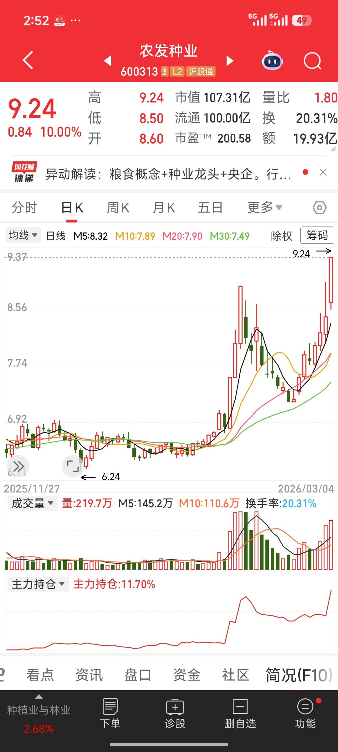 两会+战争双驱动!农业种业爆发、油气回调,资金正在这样调仓 3月4日A股出现明显风格切换:油气链大幅调整,农发种业等农业股强势涨停,市场风格快速转向粮食安全主线。这并非偶然,而是两会政策预期+中东地缘冲突双重逻辑共振的结果。 当前全国两会召开,粮食安全与种业振兴成为高频关键词。中央一号文件持续加码种业技术攻关与产能提升,生物育种、优质品种推广迎来政策红利期,机构提前布局农业板块,推动种业、粮食概念股集体走强。 叠加美伊以冲突持续升级,全球化肥、农资供应受阻,粮食生产成本抬升,进一步强化农业板块的避险与涨价逻辑。资金从高位赛道流出,涌入低位、高确定性的农业板块,形成“油退农进”格局。 油气股调整属于短期获利回吐。前期受油价暴涨驱动涨幅过大,叠加企业集中发布风险提示、交易所降温,资金短期兑现收益。但地缘冲突未缓和、油运运价维持高位,油运板块逻辑最硬,调整后仍具配置价值。 后市看,农业种业将依托两会政策持续活跃;油气链大概率震荡走强,油运优于开采与油服;黄金、白银受避险支撑易涨难庆发种业 跌。种业股种业 粮食安全种业 种业示范 种业发展基金 芯农研种业 种业纠纷 种业革命 农业种业发展 种业危机 种业保护 农芯种业 黄金种业 粮芯种业 种业维权